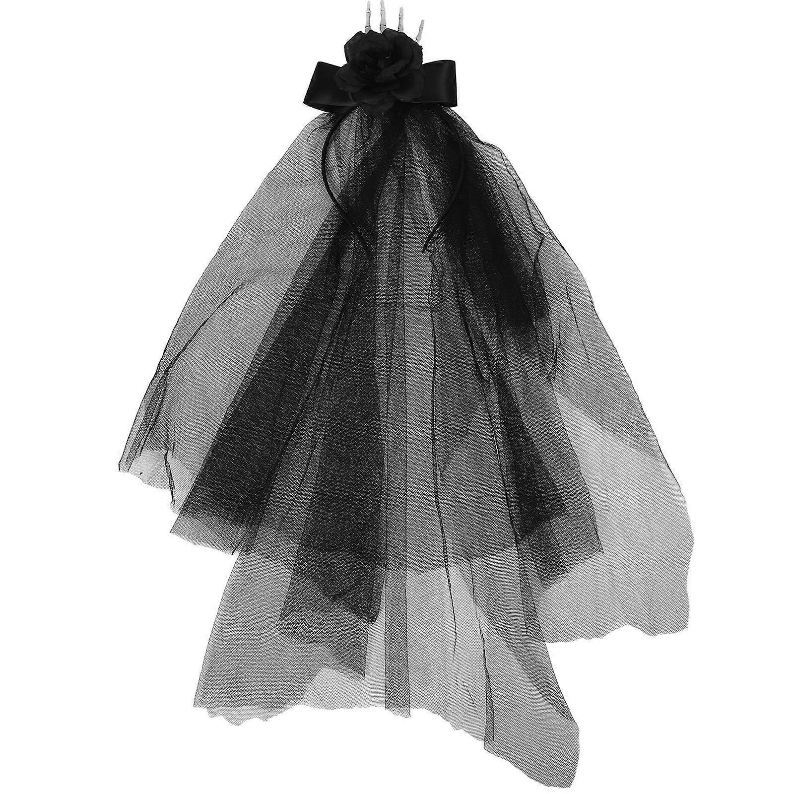 Gothic Rose Flower Skeleton Headband with Long Veil for Halloween Cosplay, Bridal, Costume Party, and Performance Wear