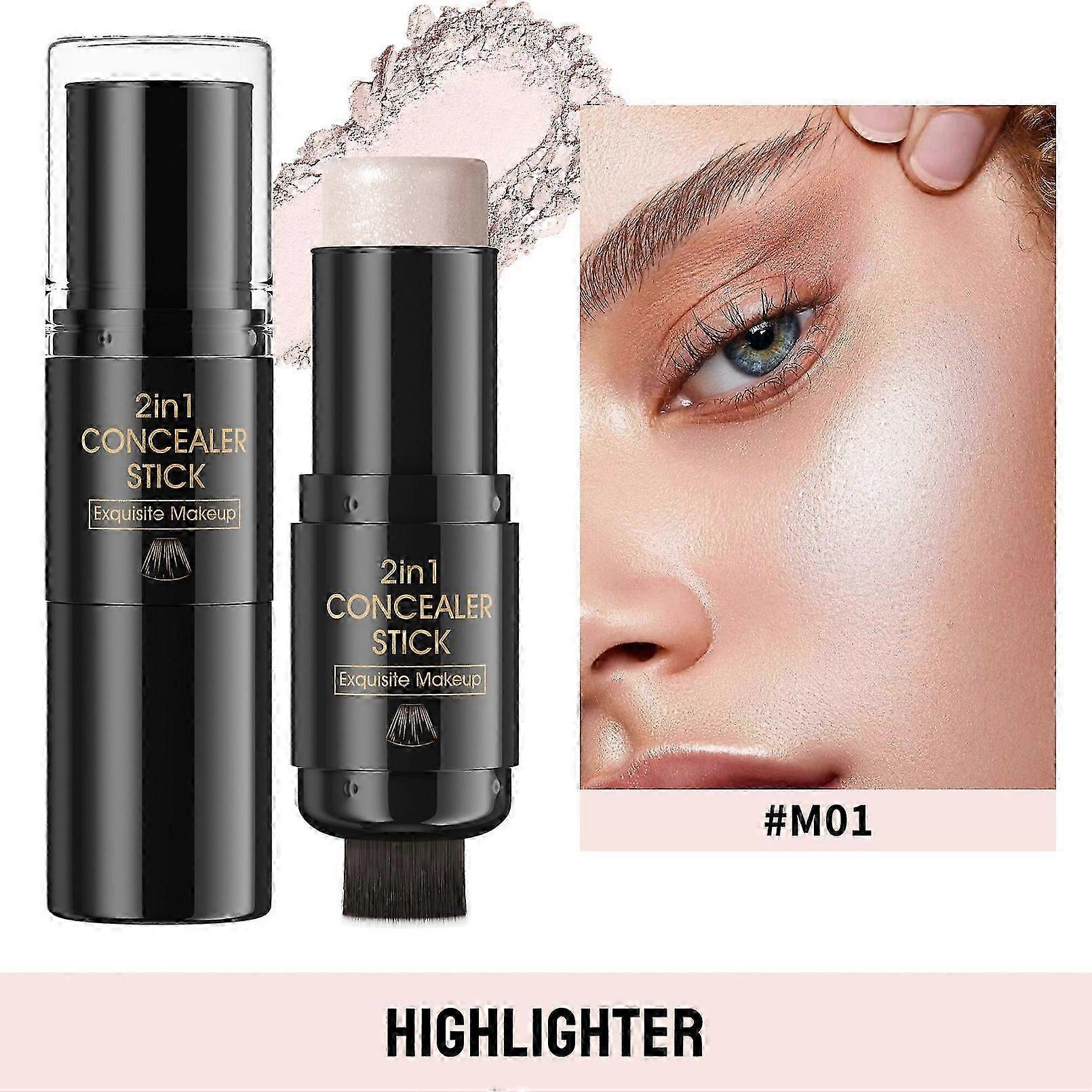 2 in 1 Contouring Stick with Brush, Contouring Face Stick and Makeup Highlighter, Multi-Use Makeup Bronzer Stick, Waterproof, Natural Finish, Long Las