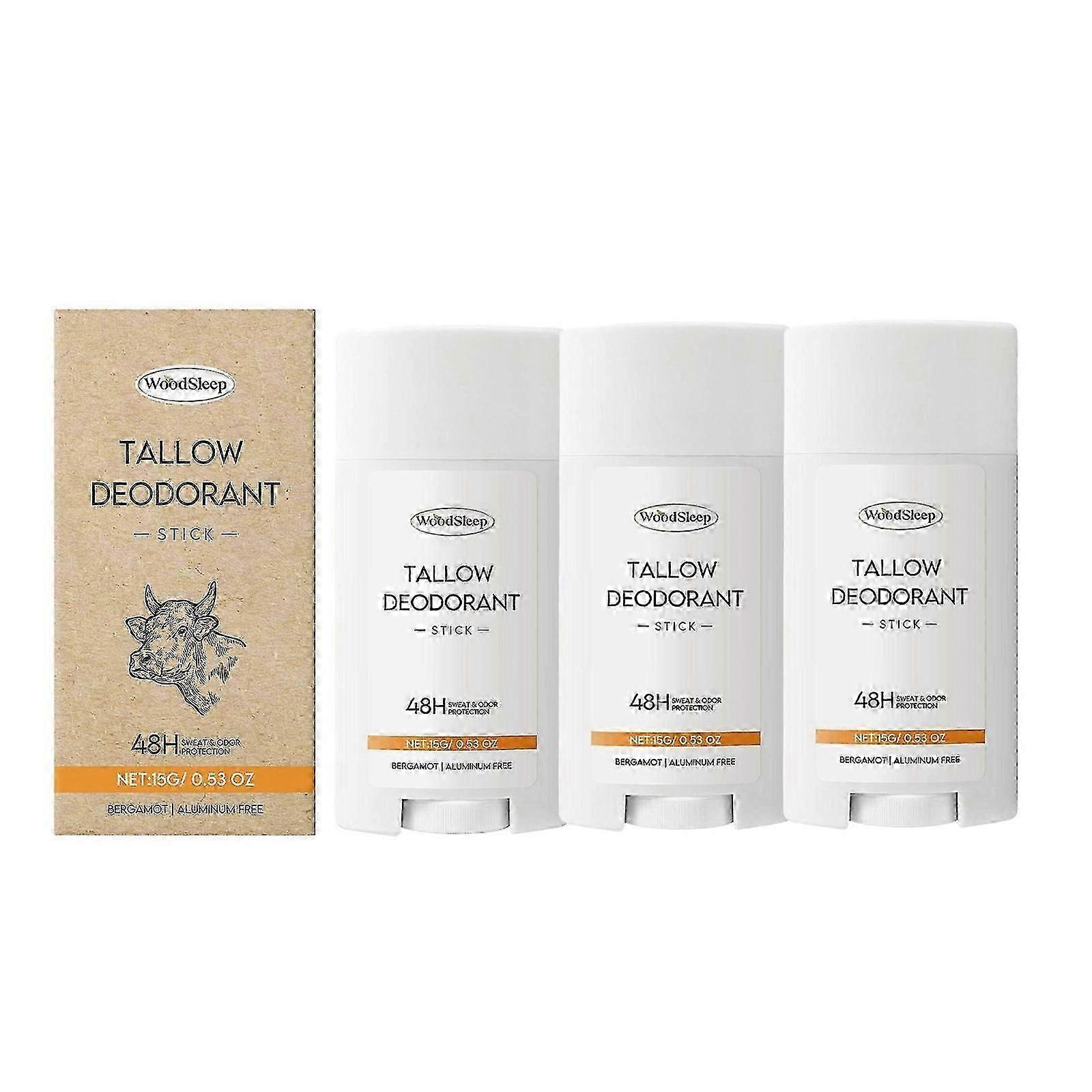 Grass-Fed Beef Tallow Deodorant Stick, Bergamot Scented, 48-Hour Odor Control for Underarms Private Parts, Aluminum-Free