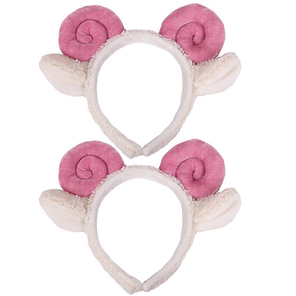 Cute Lamb Ear Headband For Women Ideal For Theme Party Including Pink Fabric Makeup Headband In 2Pcs
