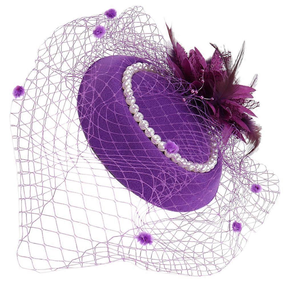 Purple Fascinator Headband for Women with Pearl Design and Lace for Banquet Wedding Tea Party 0.5in
