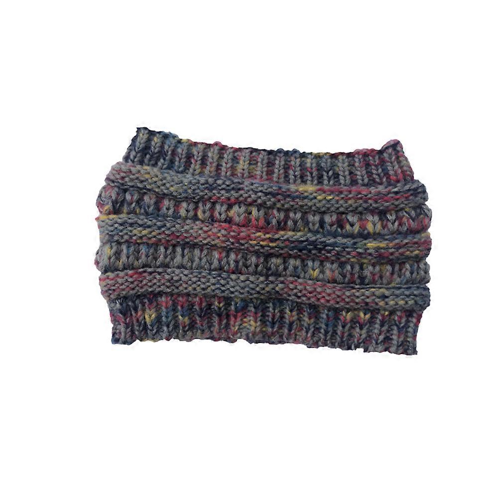 Thickened Woolen Yarn Headband with Colorful Spots, Cozy Knitted Ponytail Hat for Women, Dark Grey, Stylish Outdoor Camping Accessory
