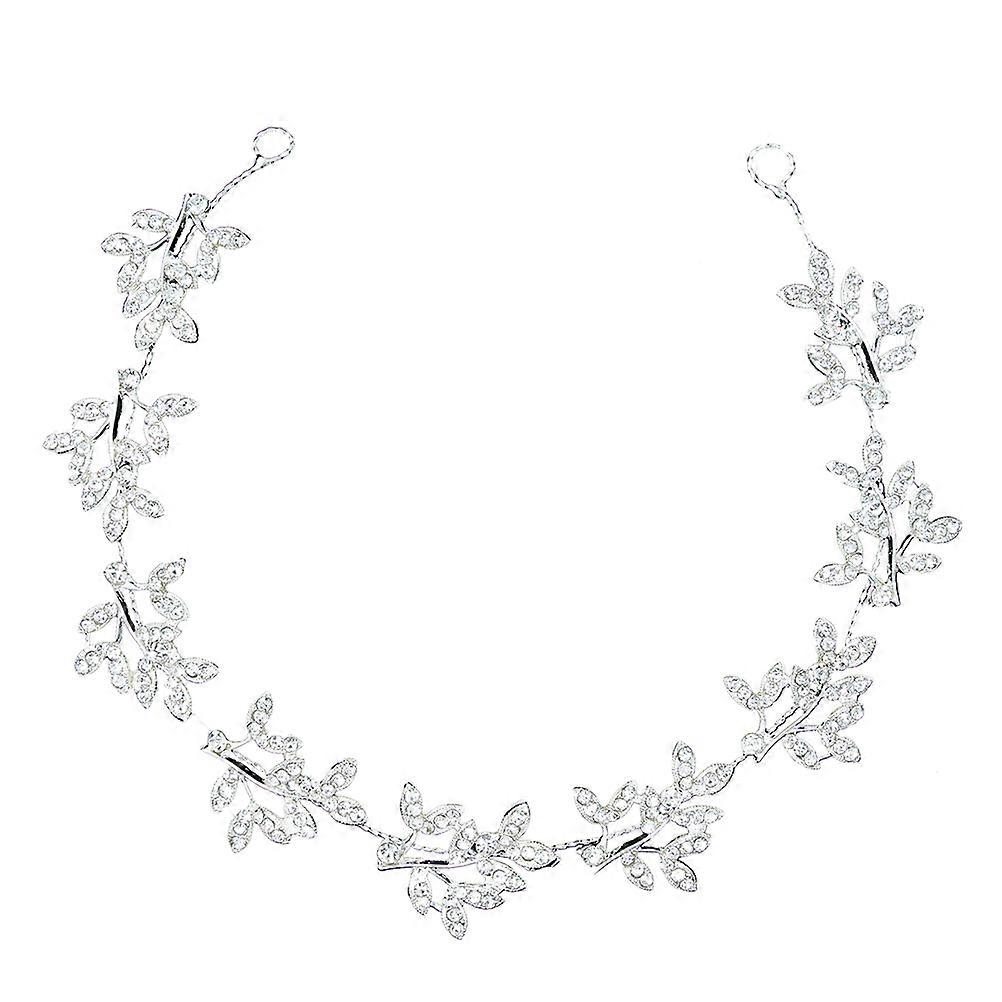 Elegant Wedding Rhinestone Headband with Leaves for Decor Silver Lightweight Comfortable