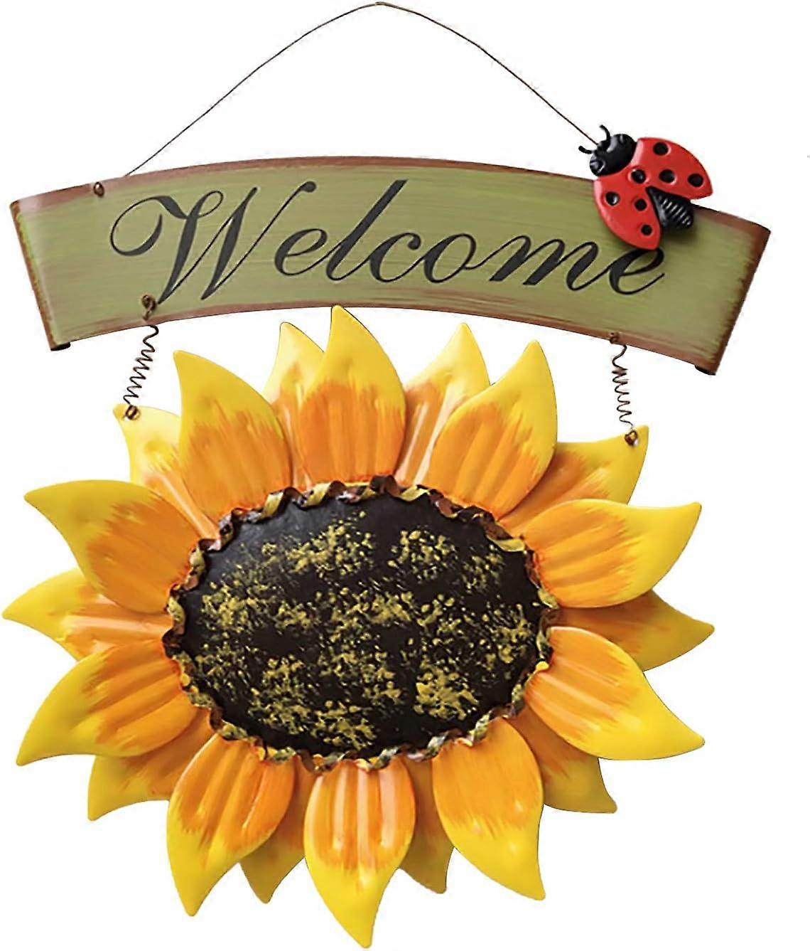 Welcome sign for front door, sunflower design with red ladybug, wall decoration for door