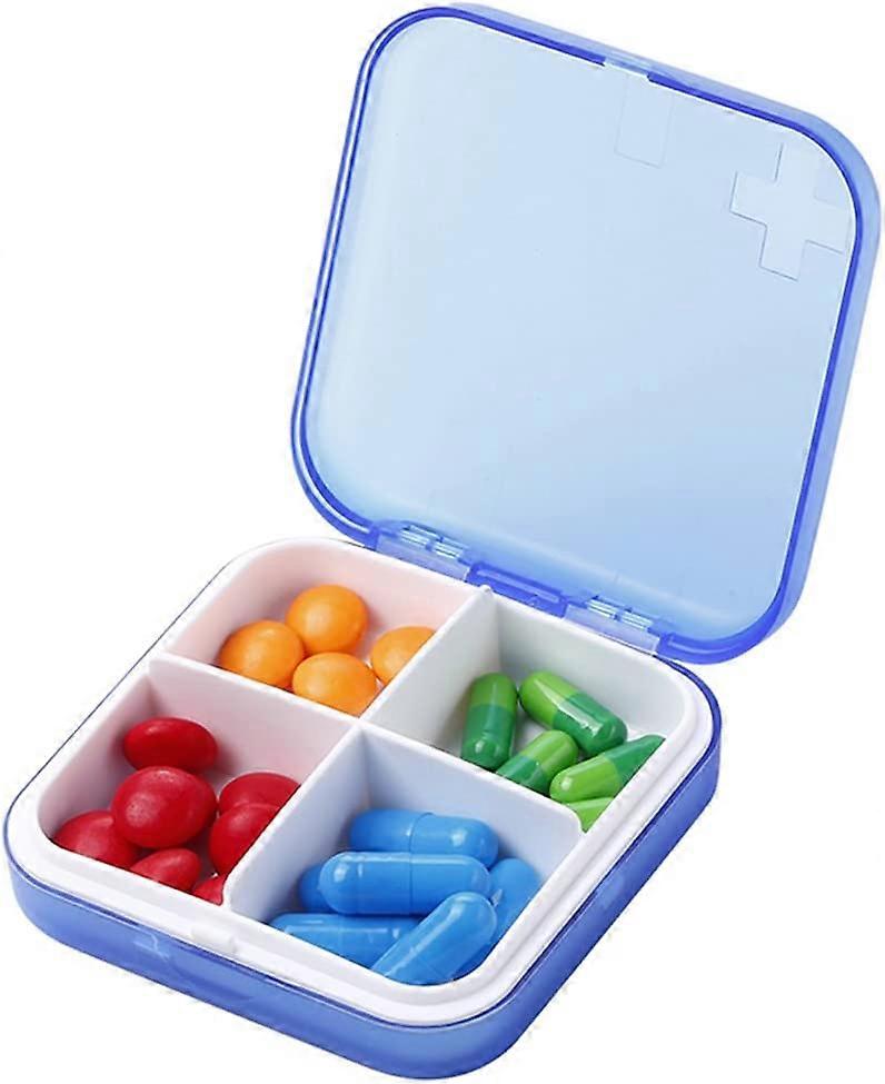Portable Pill Case Small Pill Case for Purse or Pocket, Premium Pill Case (Blue, 4 Compartments)