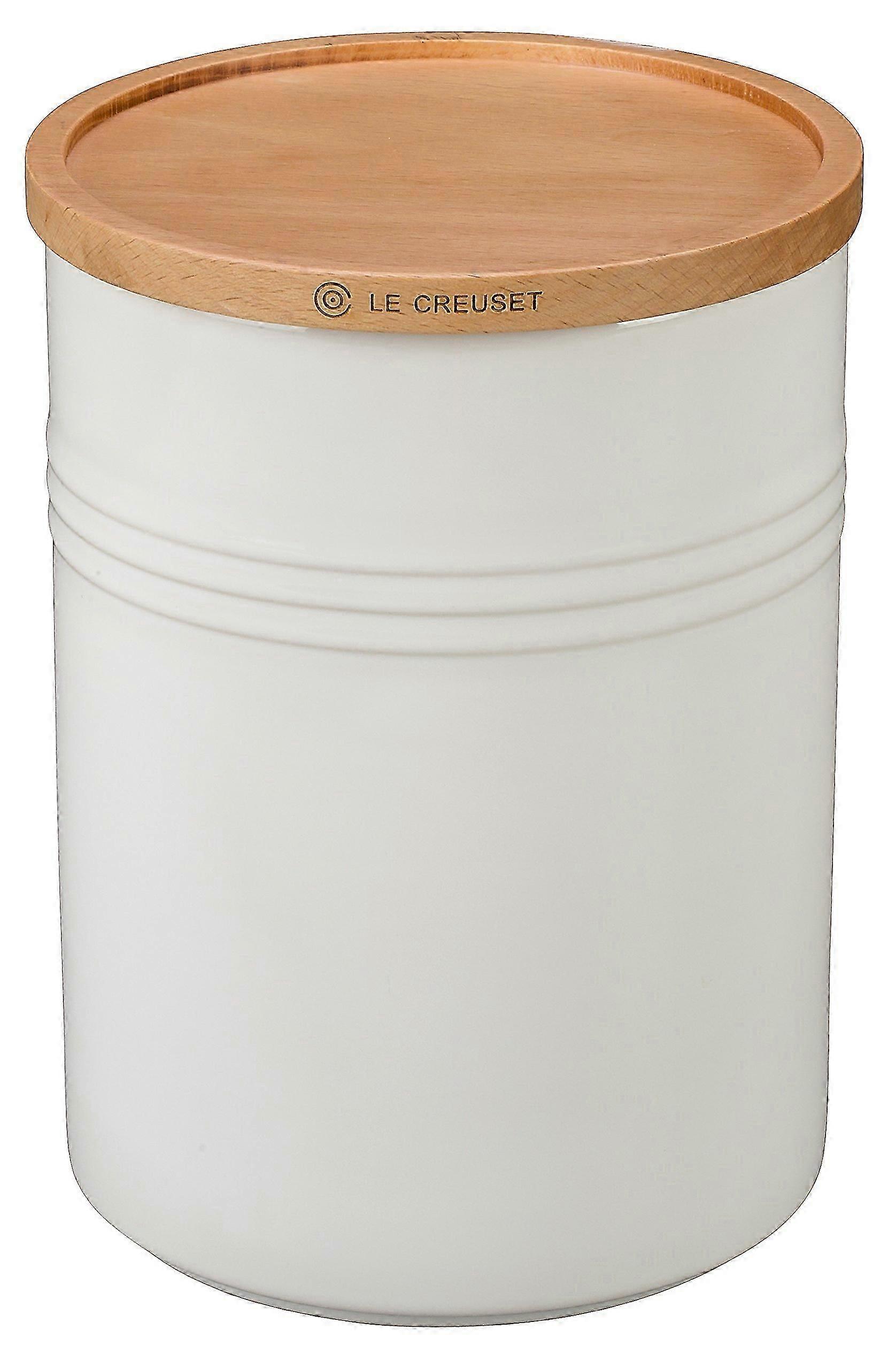 Stoare Canister with Wood Lid 22 Oz White Storage Container 4 Inch Diameter