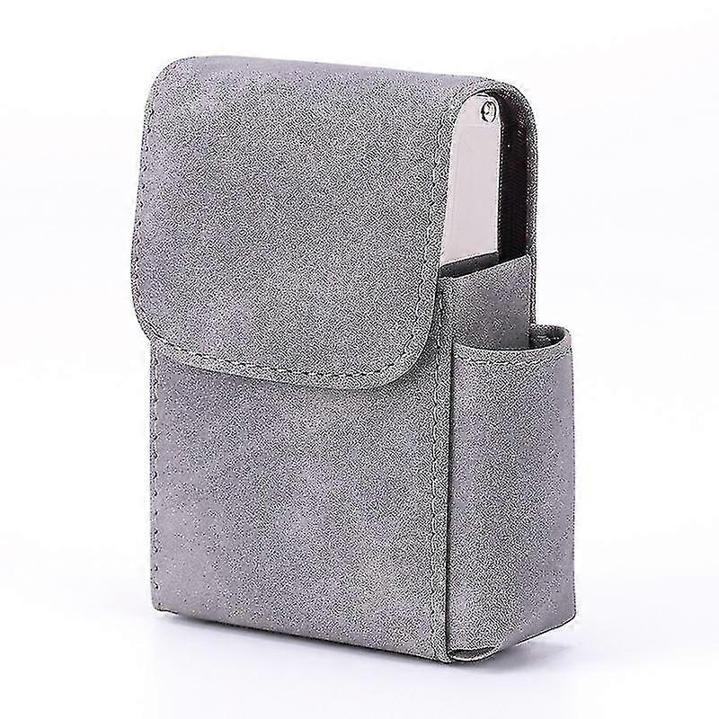 Stylish PU Leather Cigarette Box Case with Stainless Steel Cigarette Holder and Lighter Holder, Includes Belt Loop for Men (Grey)