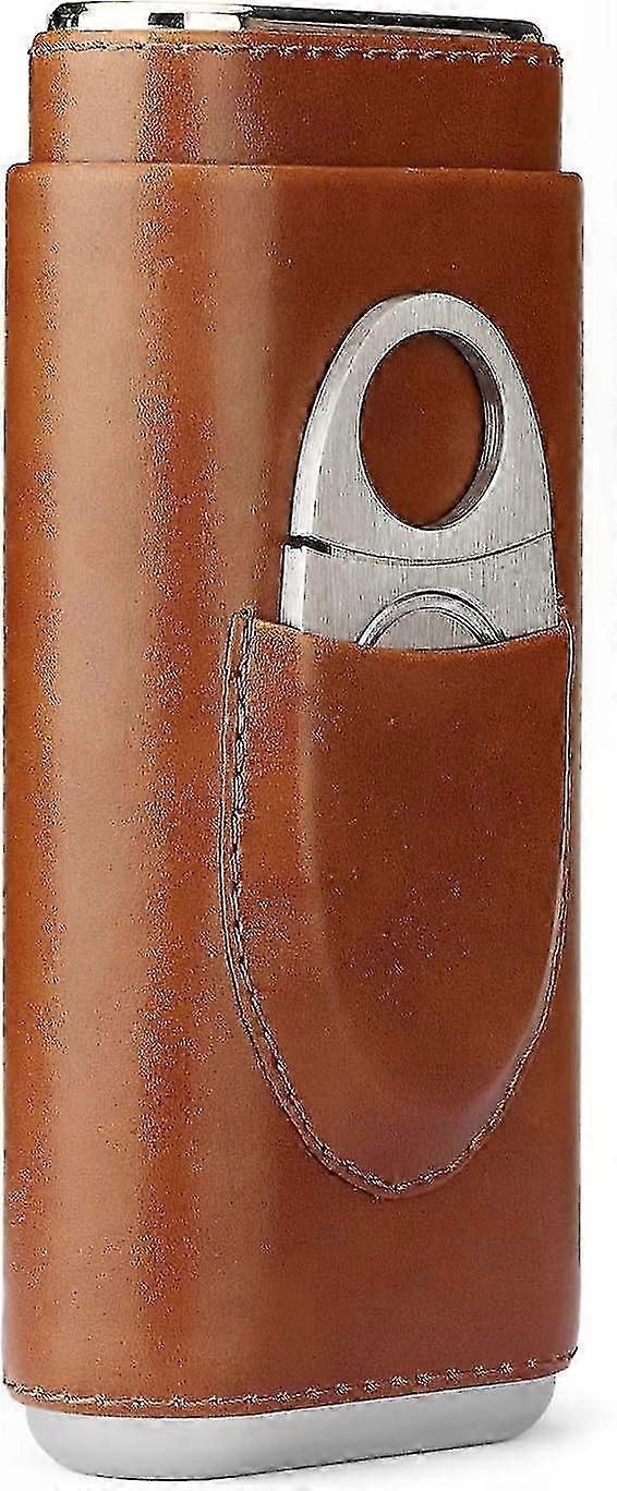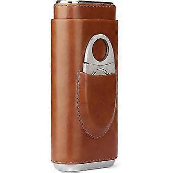 Luxury Leather Cigar Humidor Case with Cedar Interior - Includes Cutter for 3 Cigars