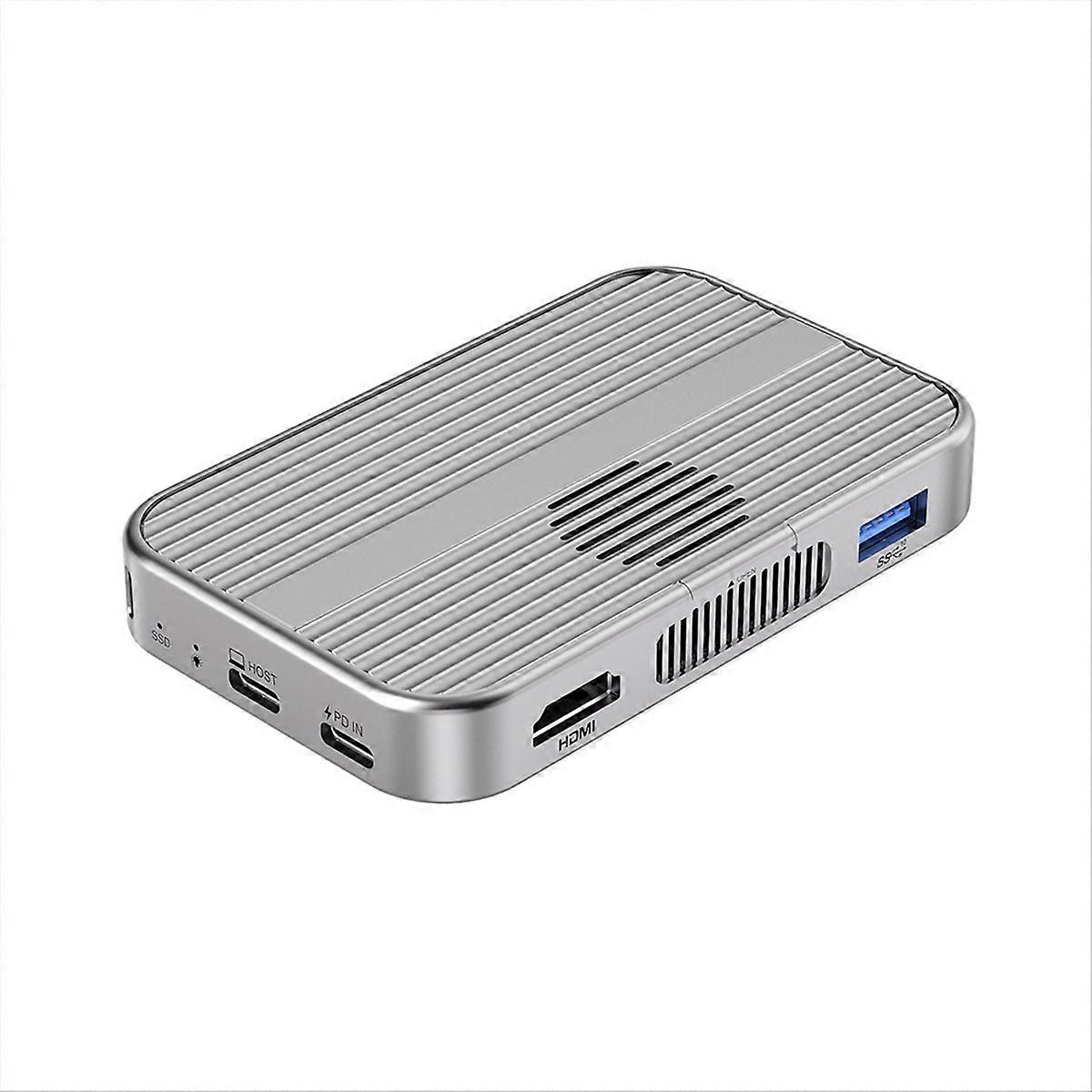 [2 IN 1 Function ]This is both a M.2 NVMe SSD Enclosure and a USB C hub with 6 in 1 function to maximize your work efficiency. Enjoy fast data access with speeds up to 10Gbps and support for 2230/2242/2260 /2280 SSDs, allowing you to easily expand your storage capacity. NOTE:1.This M.2 SSD Enclosure only for 15 16 pro/pro max/plus. 2.SSDs are not included. 3.When the cable is connected to the hard disk enclosure for the first time, it may warp a little bit, please the cable a bit! 4. official website has a lot of message, if we don't reply you in time, please find us directly through [6 IN 1 USB C Docking Station] 6 in 1 USB C dock is a multi-function docking station. It features 4K@60Hz HD port, SD3.0 card reader, TF3.0 card reader, 10Gbps USB C, 10Gbps USB A port and PD100W port. It is great for laptop/tablet/phone docking station to improve your office efficiency.NOTE:If your phone case with magnetic suction function, you can use our hard disk case directly, otherwise it 't work [Amazing Magnetic Attachment and Storage Function]This USB C Magnetic SSD Enclosure+USB C Docking Station fits perfectly with : Built-in magnetic structure, one-push to attach, stable attachment, not easy to fall off [Thoughtful Design - Heat Dissipation] This USB C Magnetic SSD Enclosure+USB C Docking Station not only has an internal fan design, but also comes with a free silicone heat dissipation sticker in the package, and the material of the enclosure is made of silver-gray aluminum alloy, which ensures excellent heat dissipation performance for and more reliable operation. Note: SSDs are not included [Wide Compatibility]Wide compatibility with devices with full-featured C interface, such as for 16 15 Pro / 16 15 Pro Max/16 15 plus, for Pro, for Pro/Air, Android, laptops and tablets. *Note: When connecting a M.2 SSD to this product, please change the format of the M.2 SSD to exFat format first.If it's