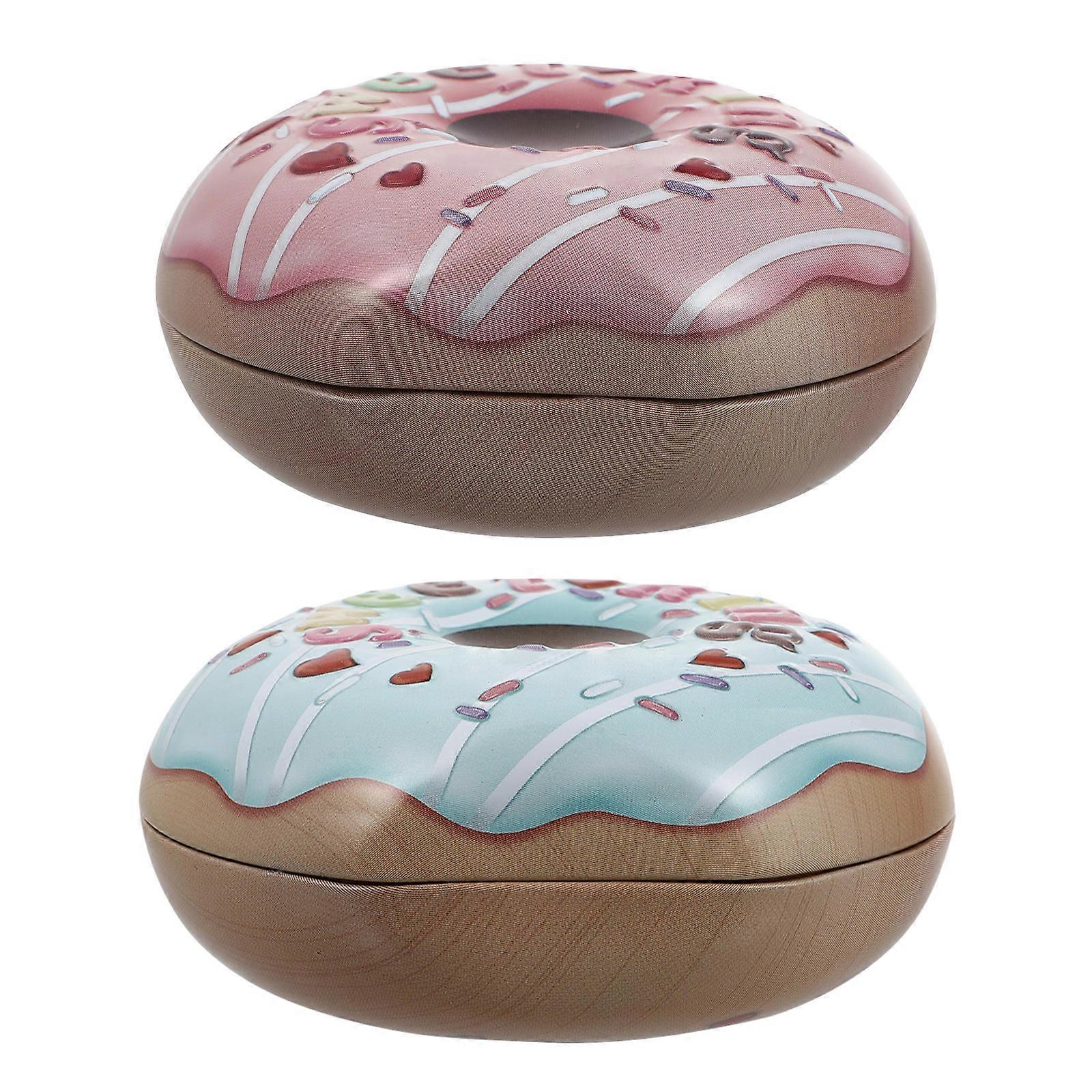 Donut Shaped Tinplate Candy Boxes 2pcs Gift Containers for Birthday Party, Wedding, Festival Portable Romantic Candy Wrapping Boxes