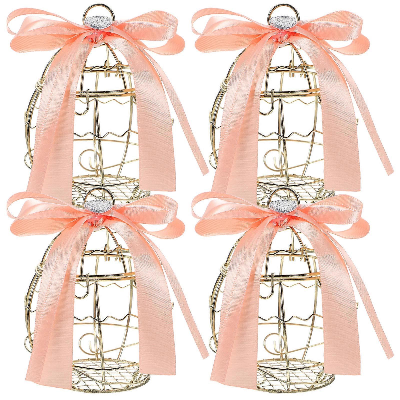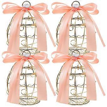 Elegant 4 Pack Gold Decorative Bird Cage Candy Boxes with Hollow Design for Wedding Favors and Sweet Treat Packaging