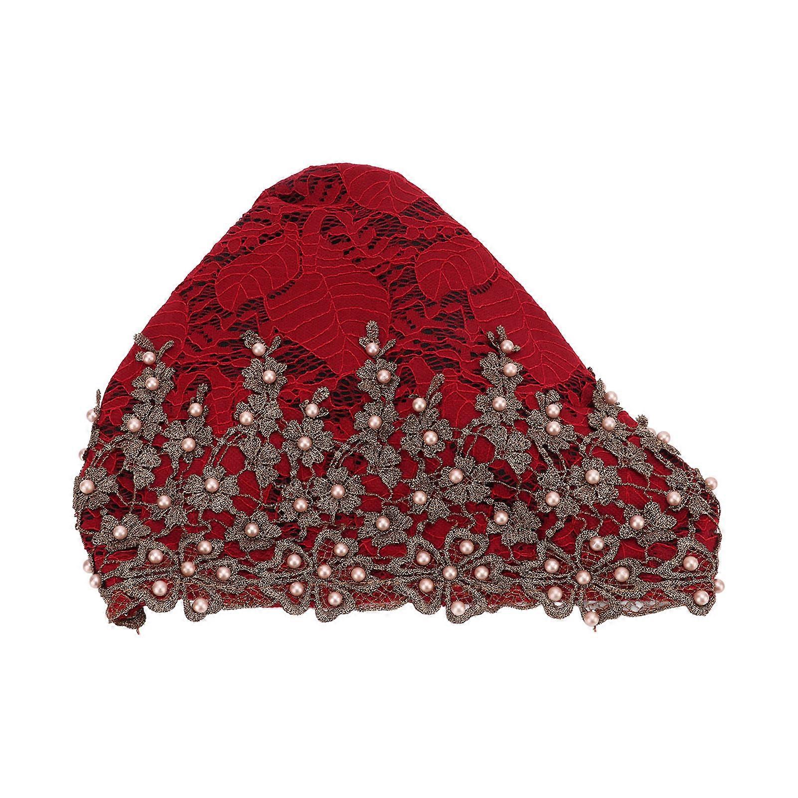 Turban Head Wraps Vintage Embroidered Soft Lace Material Beaded Fleece Hair Hat for Women Daily UseMaroon