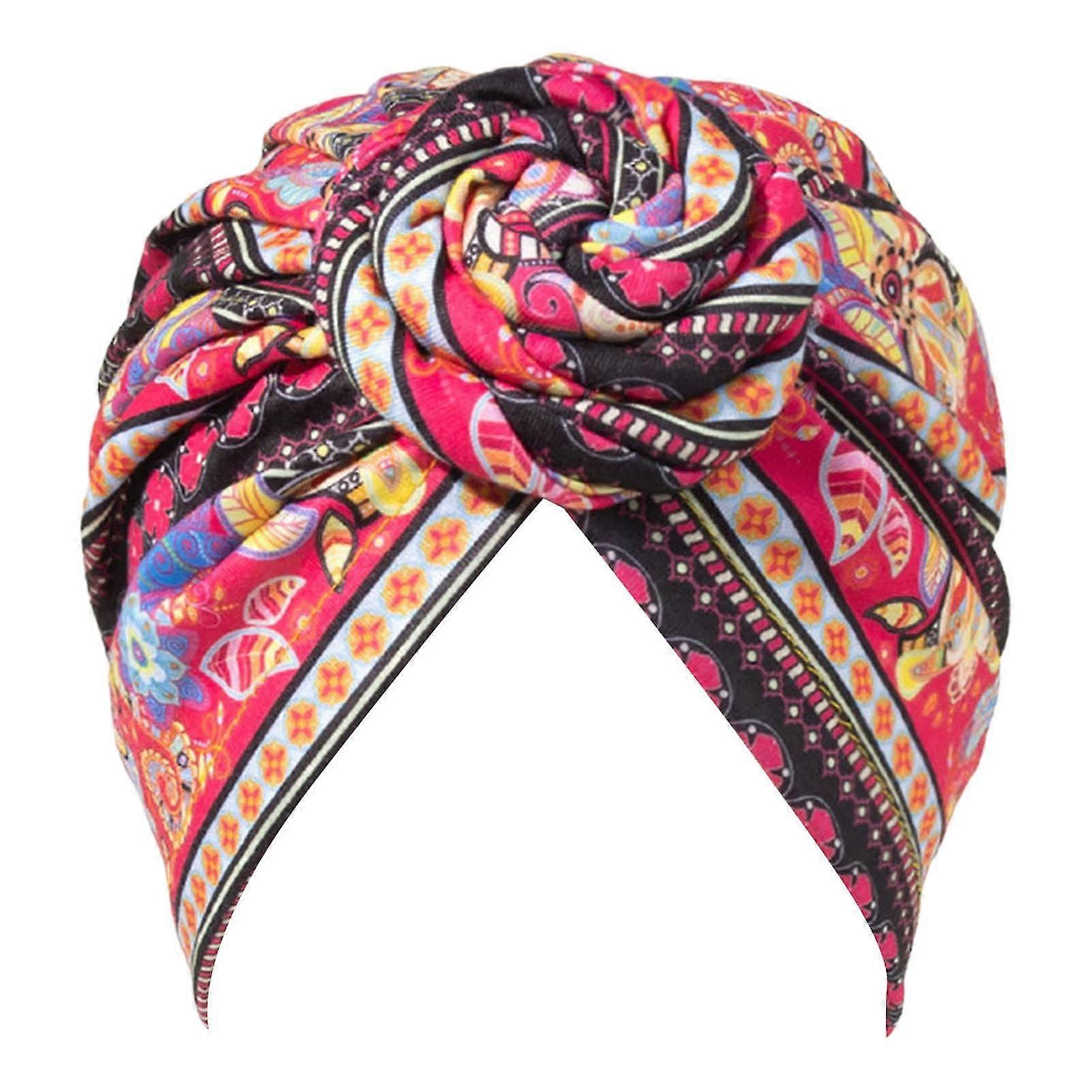 Turban Cap Twisted Retro Print Stretchy Comfortable Super Soft Hide Hair Breathable Bohemia Pre-tied Bonnet Women Beanie Hat For Daily Life