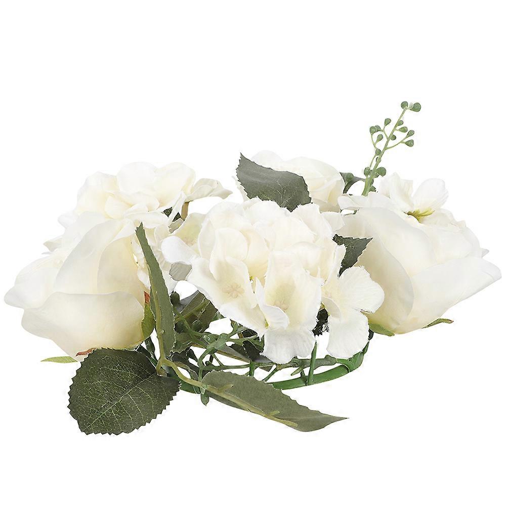 Pillar Candle Wreath Candle Rings for Party Use 5Pcs White Flower Garland