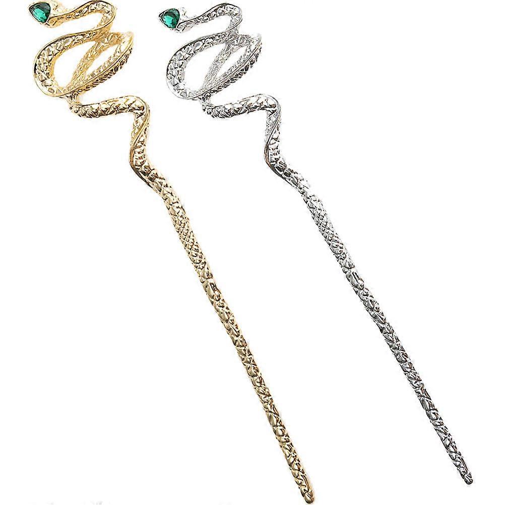 Snake Hair Chopsticks with Rhinestones Alloy Hairpins for Long Hair Traditional Bun Accessories Elegant Minimalist Jewelry for Women Special Occasions