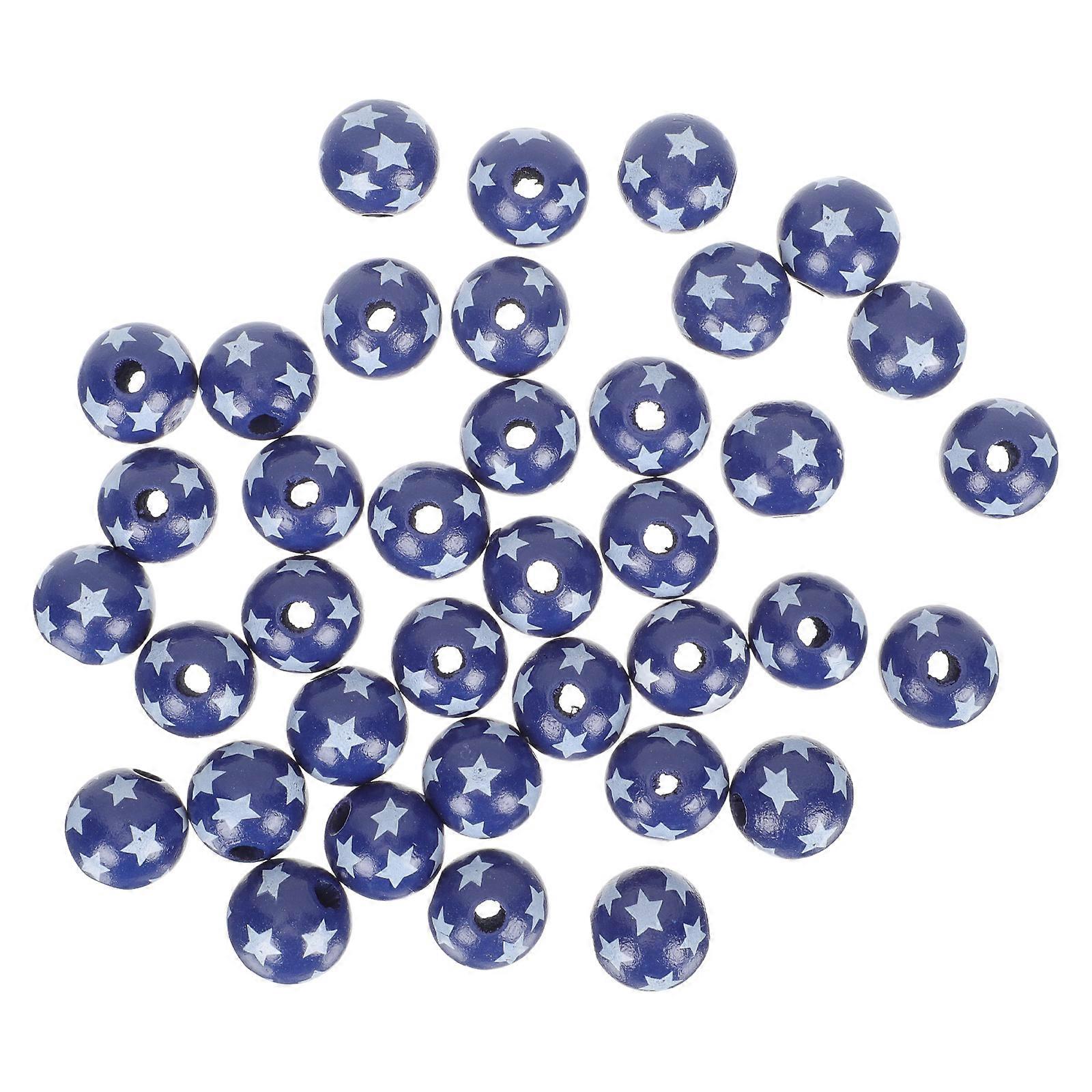 Independence Day Star Pattern Wooden Beads for DIY Crafts and Decor Navy Color 100 Pieces