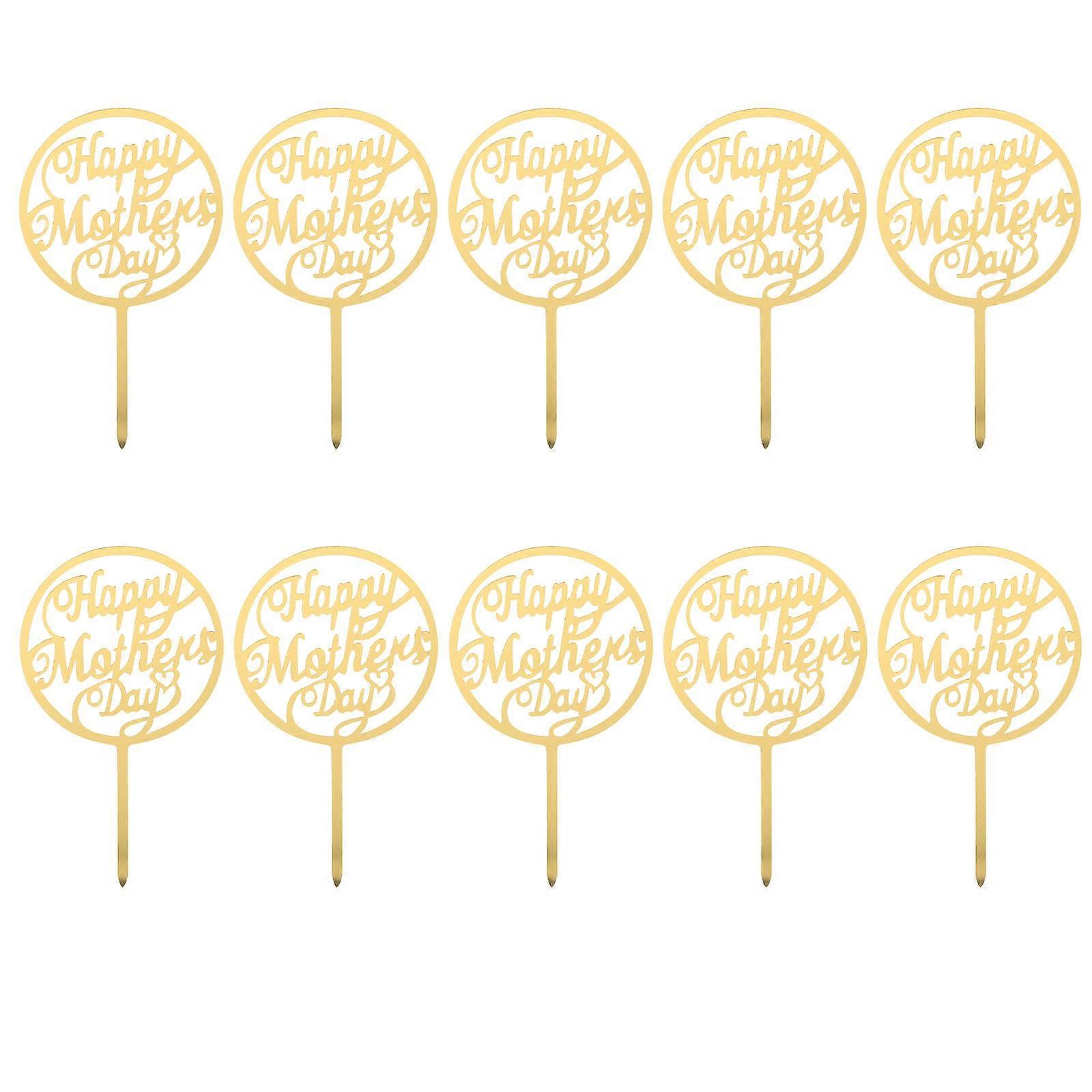 Mother's Day Cake Decoration 10Pcs Non-deformable Acrylic Cupcake Topper For Dessert Plates Golden Color