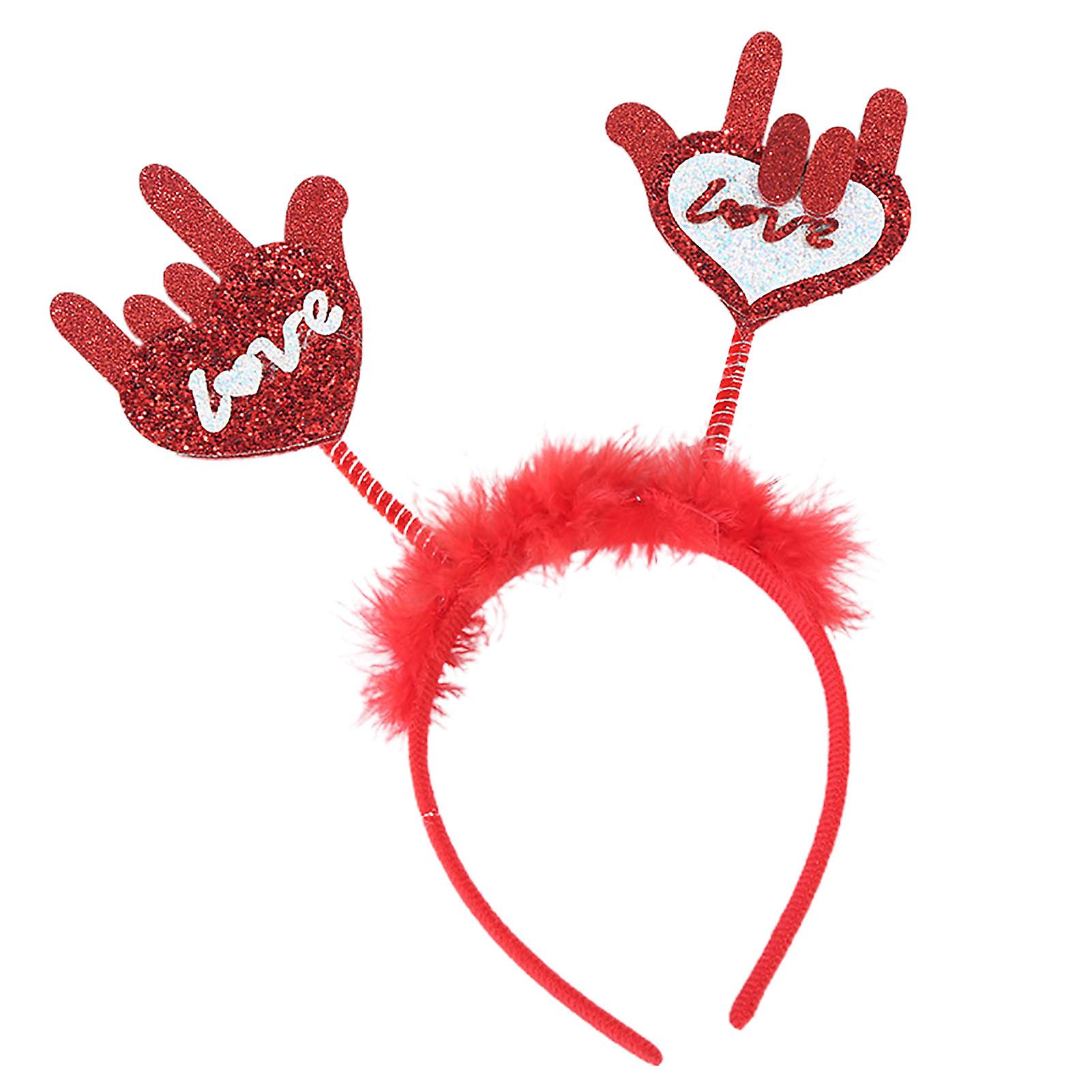 Valentines Day Headband Sequins Heart Love Antenna Lips Hair Hoop Funny Hairband Festival Party Head Bopper Cosplay Prop