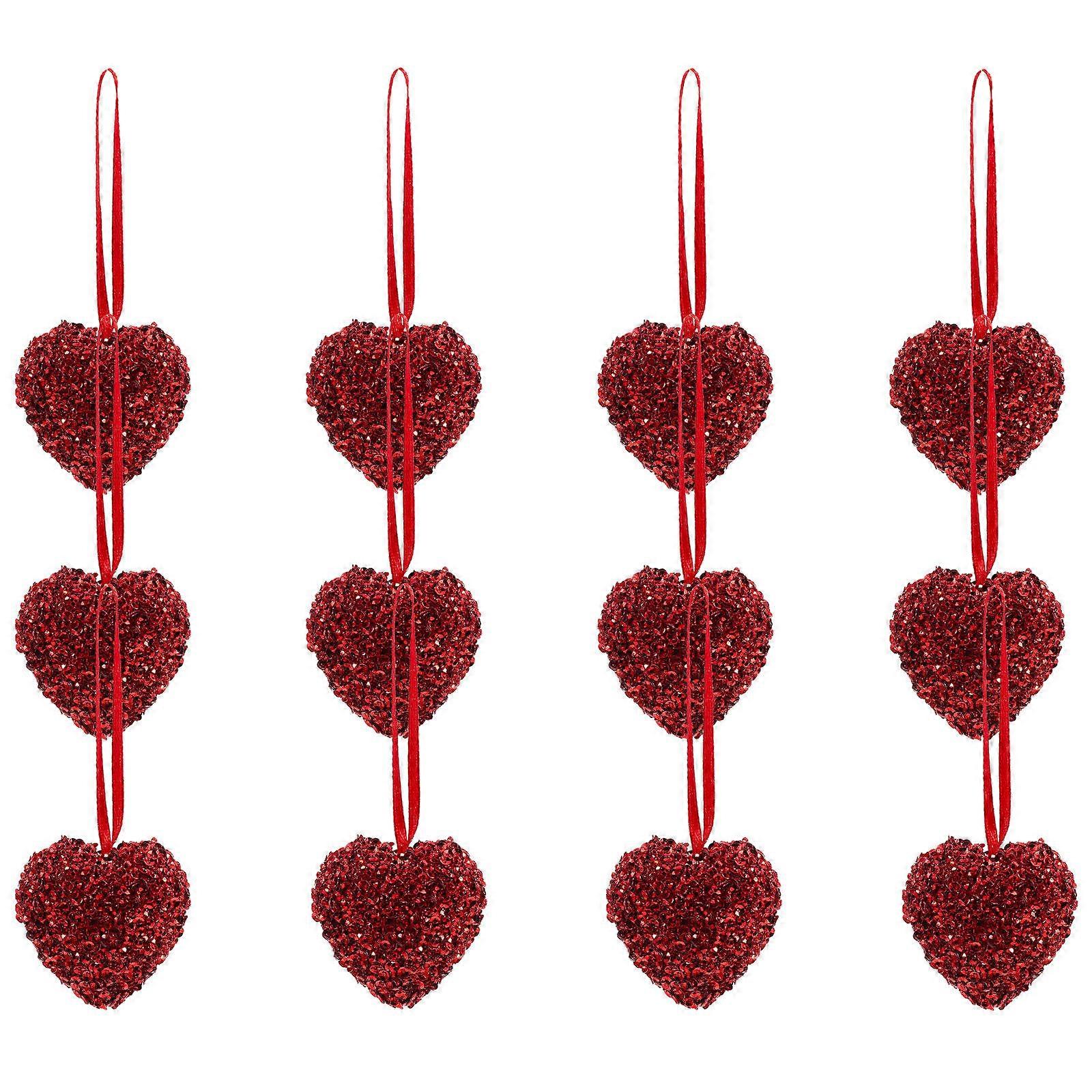 Valentine's Day Heart-Shaped Decor Sequins Heart-Shape Pendants Red 5x5cm Festival Decoration 12Pcs