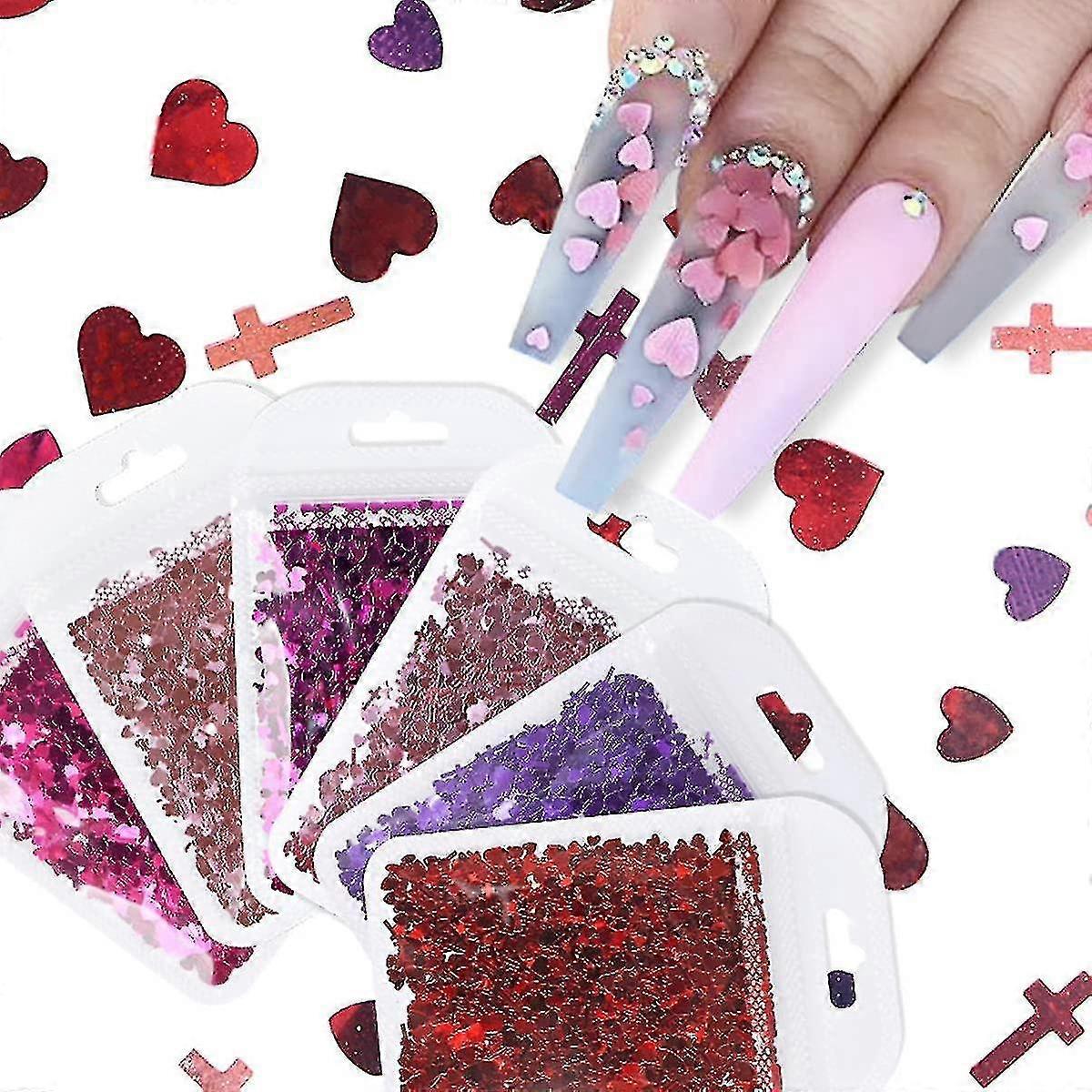 Valentines Nail Art Glitter Flakes Stickers Decals 3d Love Heart Sequins Mixed Cross Design For Manicure Polish Diy Charms Tips Nail Decorations Suppl