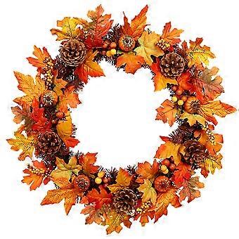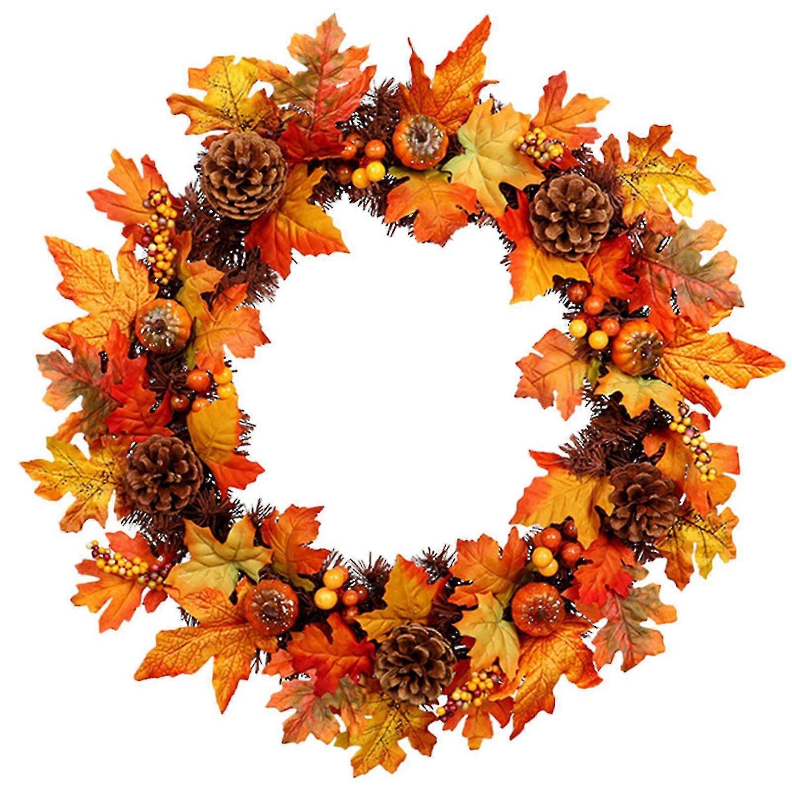 Thanksgiving Door Decoration Pumpkin Simulation Maple Leaf Pine Cone Pumpkin Harvest Garland Seasonal Home