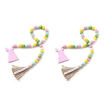 Easter Wood Bead Garland, Pink Bunny Spring Wood Beads Garland with , Wooden Beaded Easter Boho Dec