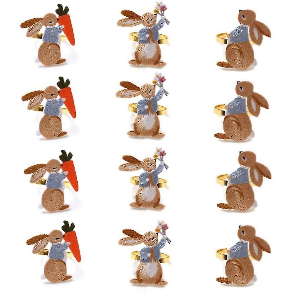 Easter Napkin Rings Set Of 12 Bunny Napkin Buckle Embroidered Rabbit Metal Napkin Ring Holders For