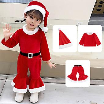 عيد الميلاد الأولاد الفتيات بذلة طويلة الأكمام مع قبعة مدببة مجموعة الزي عيد الميلاد احتفالية أحمر سانتا مساعدو تأثيري كيت