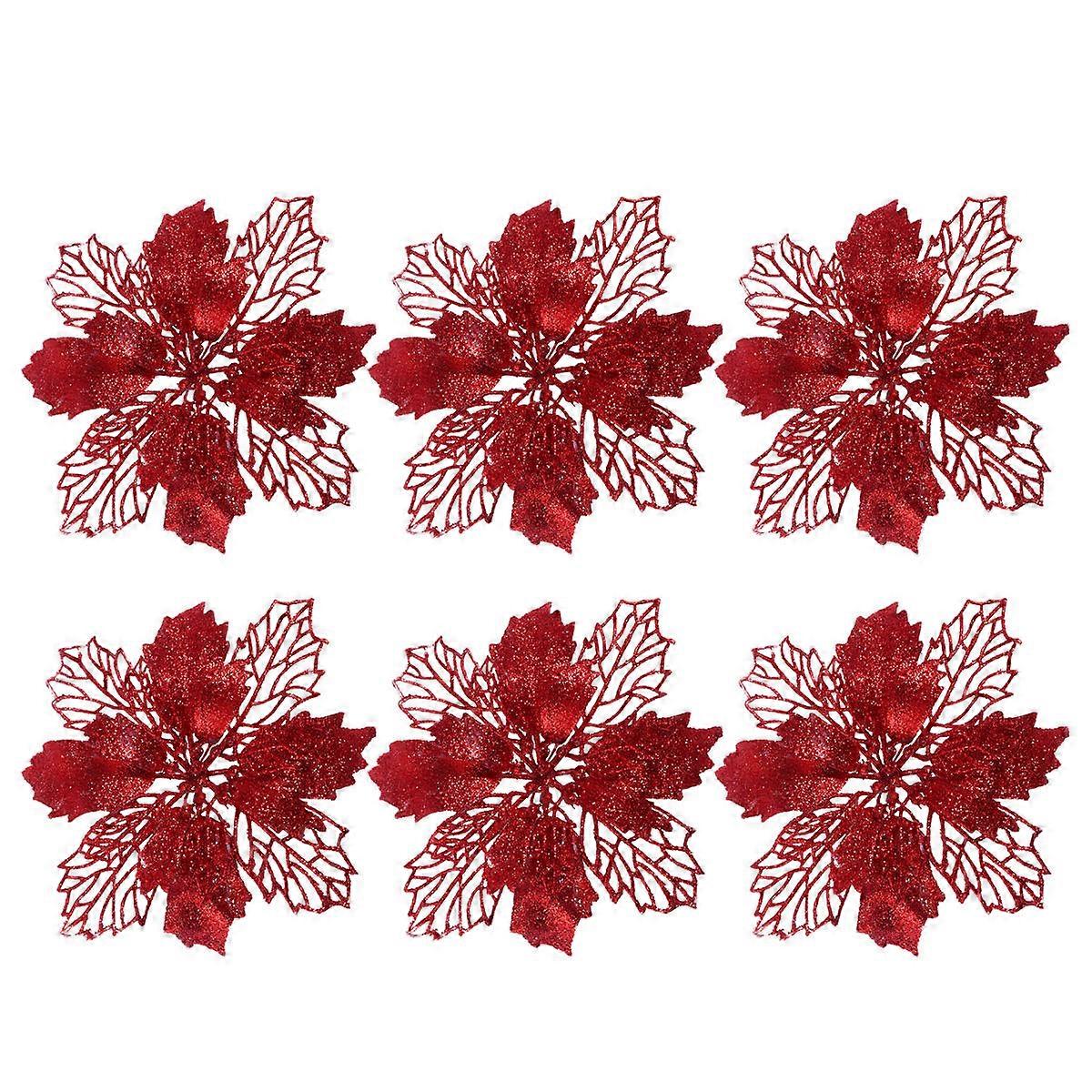Christmas Decoration Props Flower Traditional Shape Home Party Gathering Ornaments Red 6Pcs
