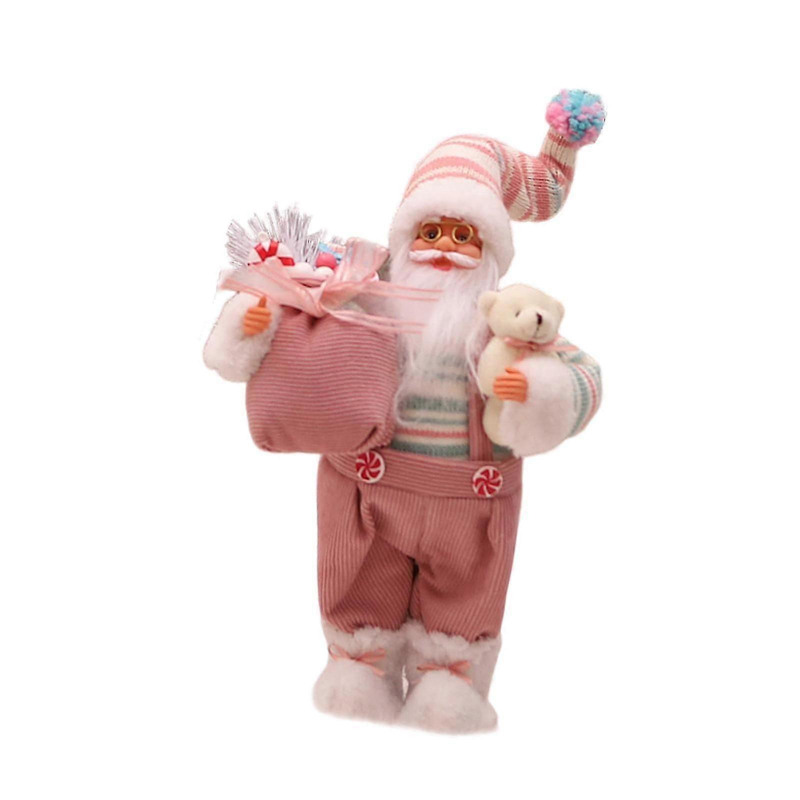 Christmas Decoration Santa Claus Figurines Holding Gifts Bag and Bear Doll Ornament Standing Figure for Party Supplies Table