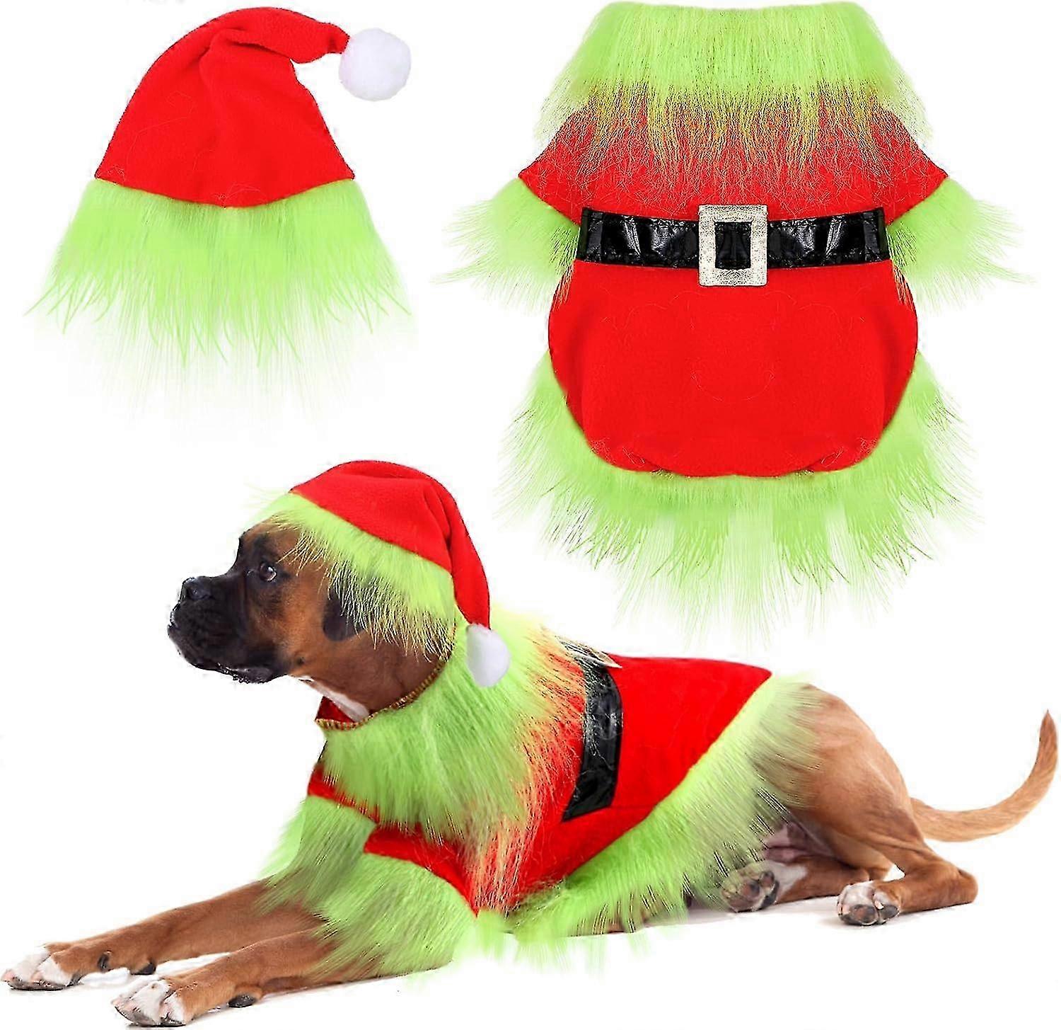 Dog Christmas Outfit Holiday Pet Character Green Hoodie Shirt with Hat for Dogs