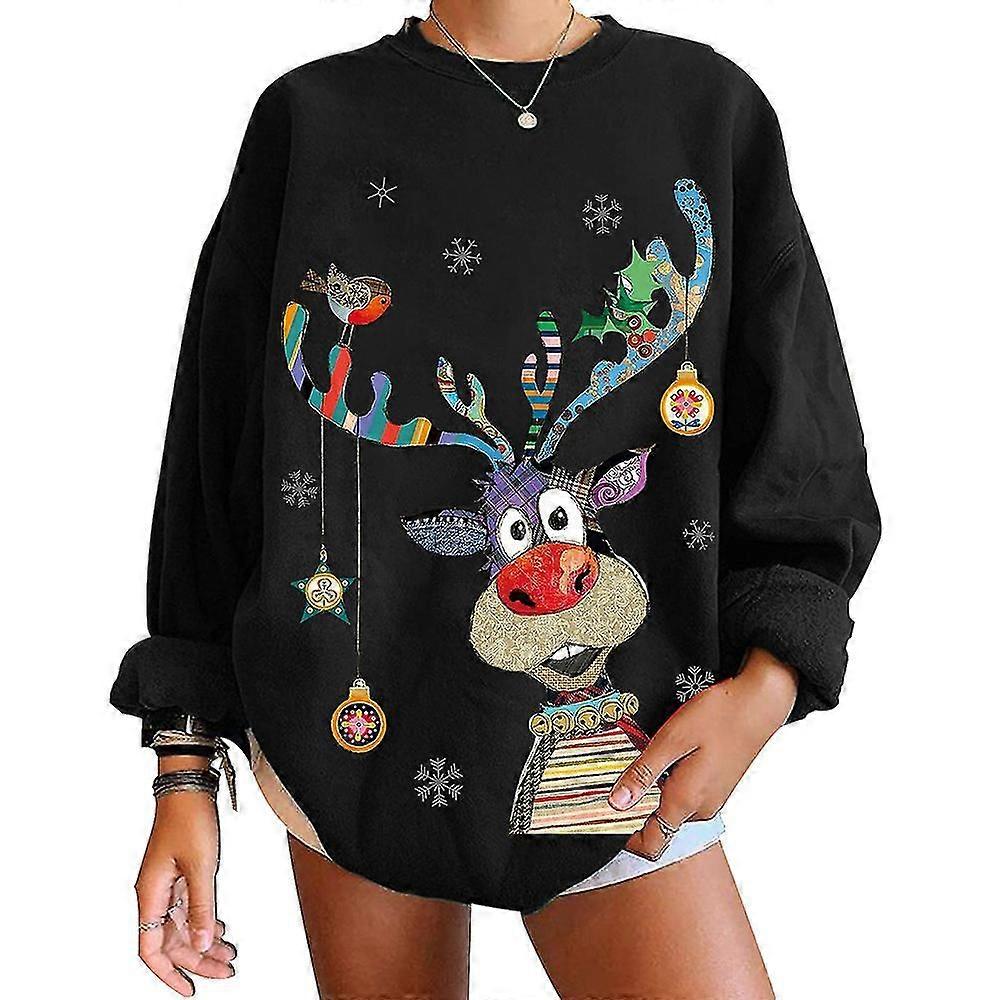 Christmas Fleece Sweatshirt Women Long Sleeve Xmas Elk Print Pullover Jumper Tops