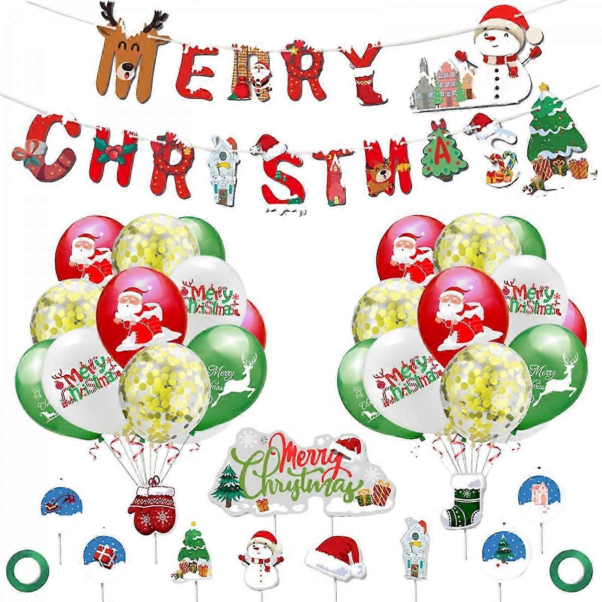 Christmas Letter Balloons Banner Set - 34 pcs, Red Green White Balloons for Xmas Party Decorations