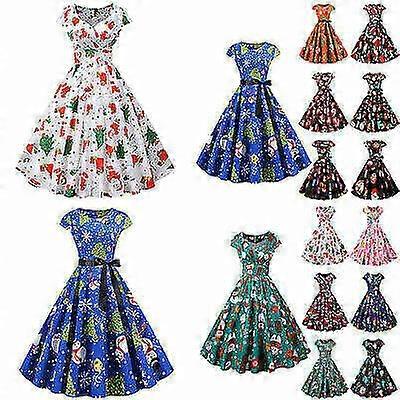 Christmas rock robe dress party prom swing O-neck sexy ladies retro print elegant