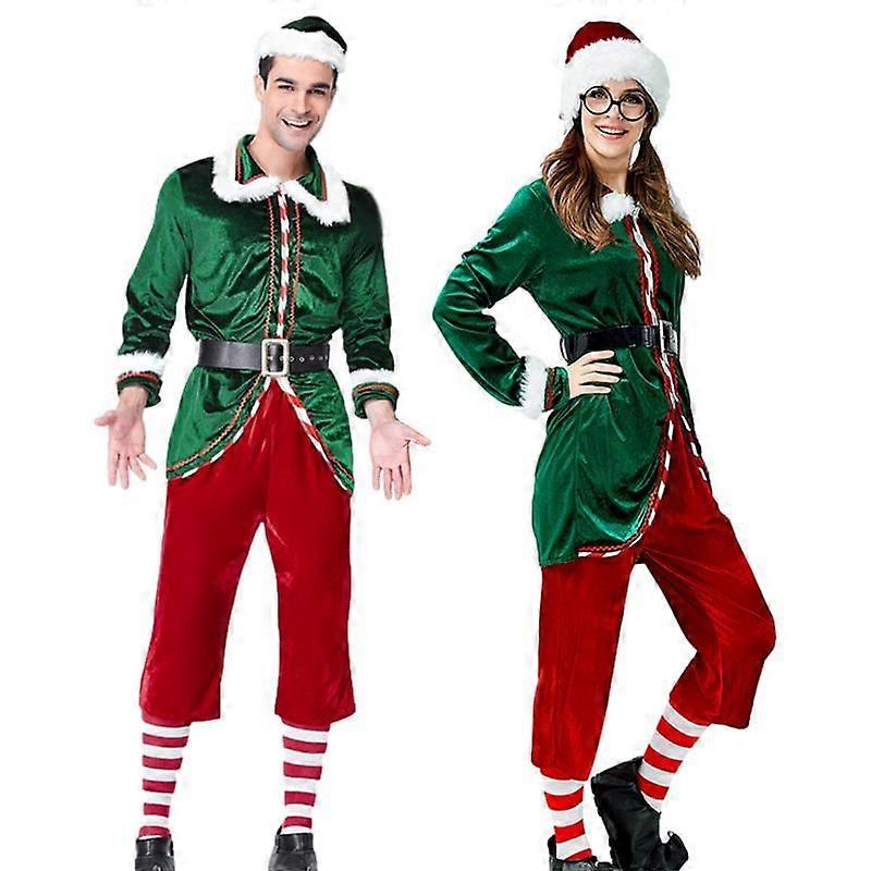 Christmas Santa Claus Costume Green Cosplay Party Family Carnival New Year Fancy Dress Clothes Set For Men Women