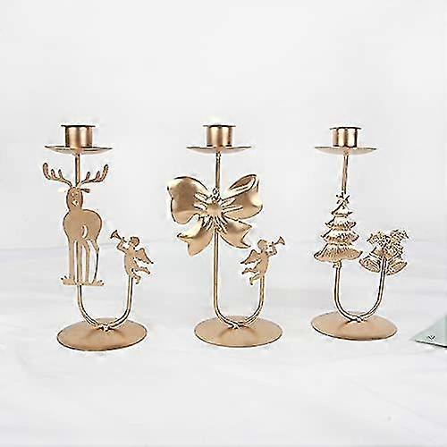 Christmas Candlestick Wrought Iron Candlestick Holders Creative Desktop Ornament Retro Xmas Party Supplies For Home Hotel Bar Decoration (gold1pc)