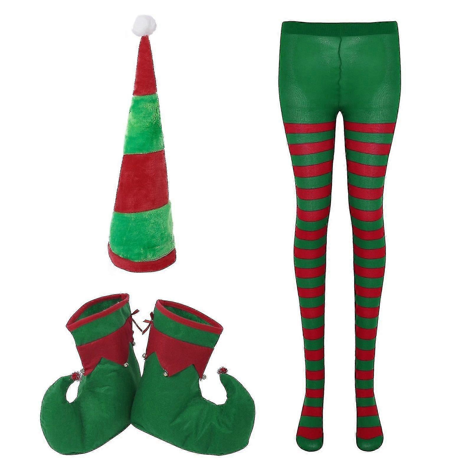Christmas Elf Hat Santa Elf Shoes And Christmas Striped Tights For Adult Xmas Holiday Party Costume Tights Pantyhose /hat/shoes