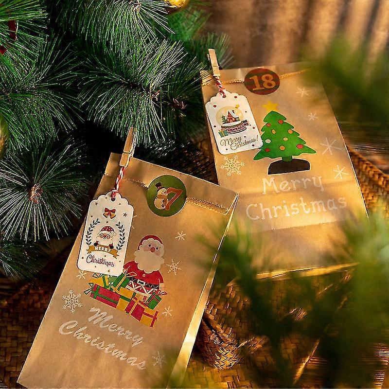 Christmas Advent Calendar Bags Set 24 Days Burlap Advent Calendar Gift Kraft Paper Bags With Clips Diy Christmas Navidad Decor