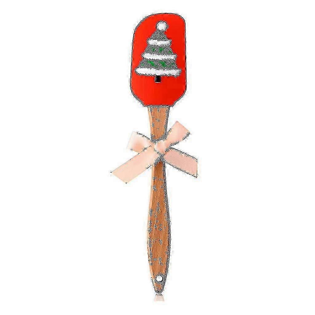 Christmas Spatula Wooden Handle Silicone Cream Scraper(2pcs-red+pink)