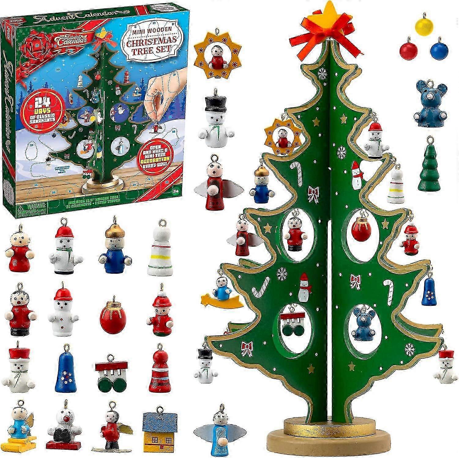 Christmas 24 Days Countdown Advent Calendar With A Tabletop Wooden Christmas Tree And 28 Ornaments Snowman Santa Decorations