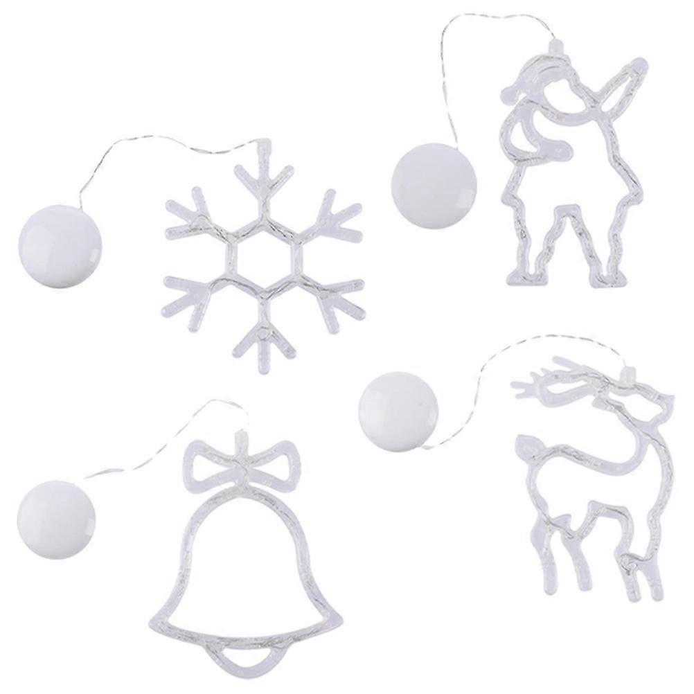 Xmas LED Light Window Suction Light Christmas Pendant Decoration For Home And Party 4Pcs Silver Battery Powered