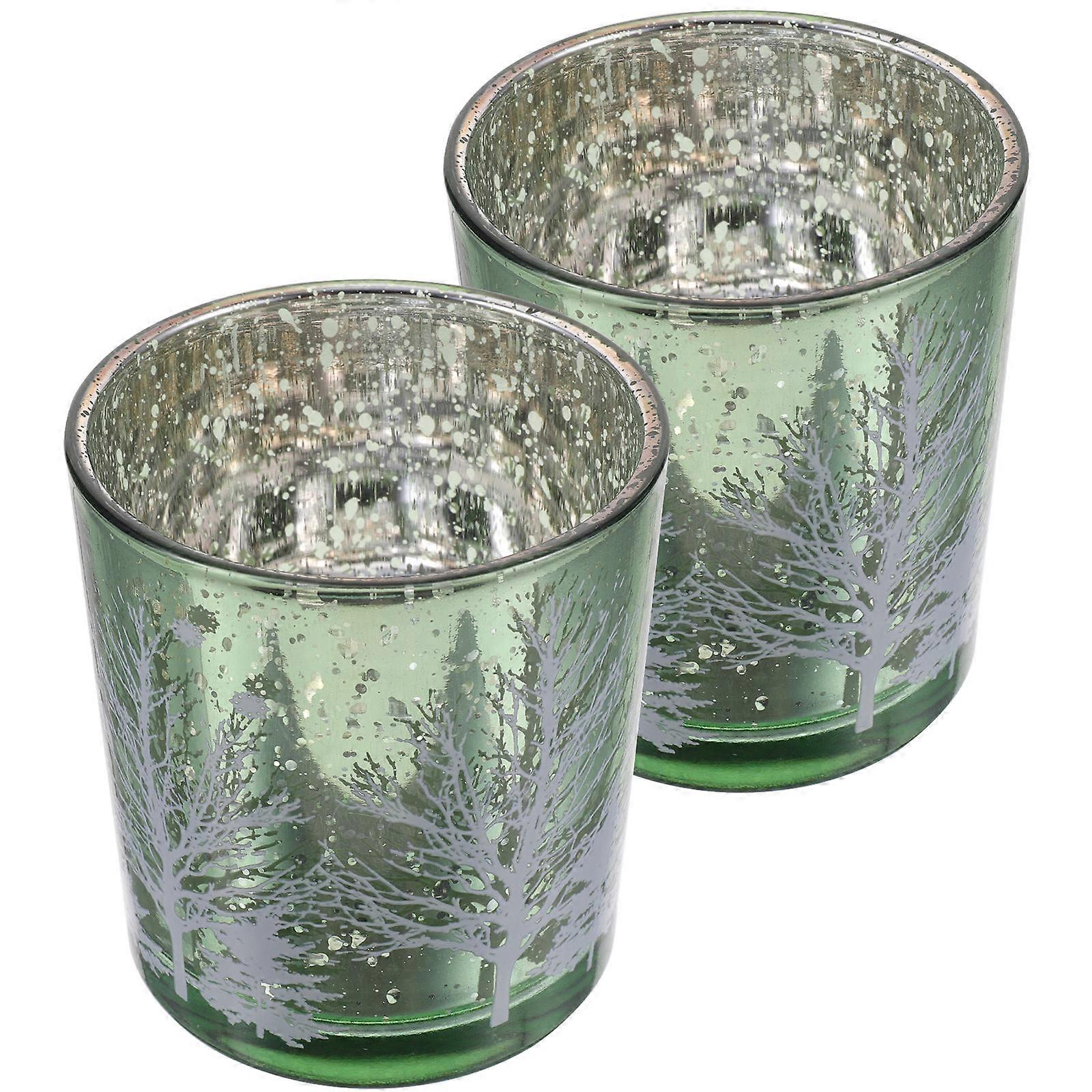 Christmas Tealight Candle Holder 2Pcs Green Glass Ornament Home Decor Suitable For Festival Celebration Warm Atmosphere
