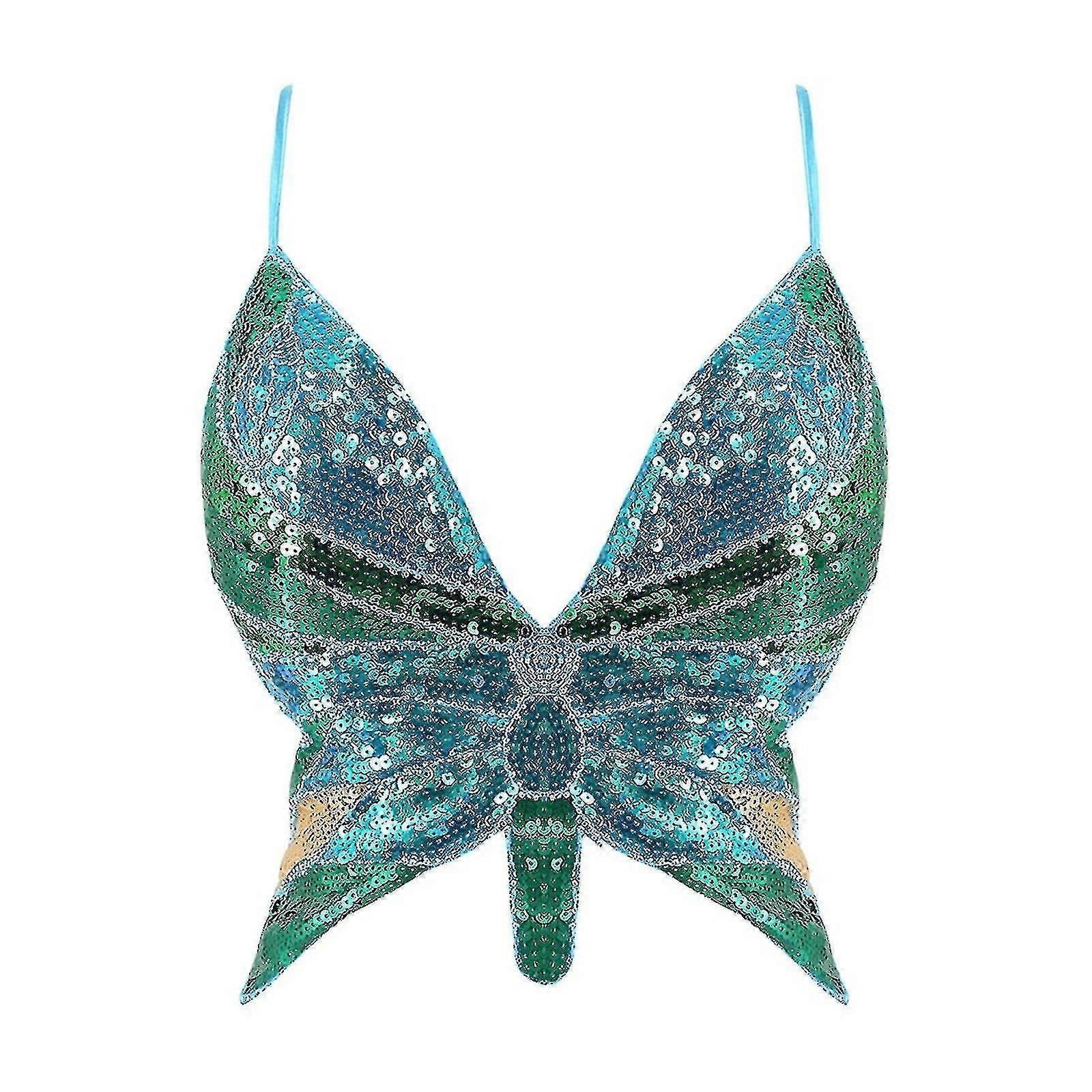 Christmas Y2k Butterfly Sequin Crop Top Women Summer Backless V Neck Sexy Club Costume Outfits Festival Clothes New Bandage Bra Tops 2022 - MXBC
