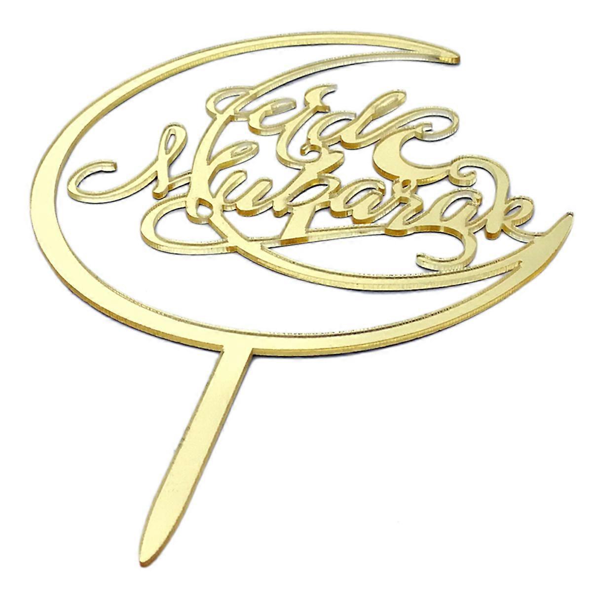 Eid Mubarak Dessert Topper Acrylic Mirror Sticker Design Cupcake Flag for Birthday Wedding 1Set Golden