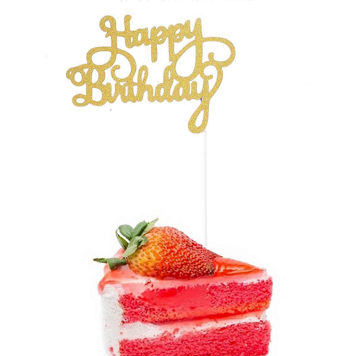 Birthday Cake Toppers Paper Cake Insertion Card for Decorating 20Pcs Golden