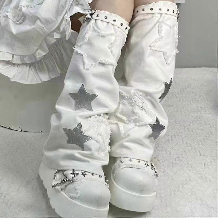 Night teaching room leg covers y2k blue denim calf socks mid-tube star pile socks