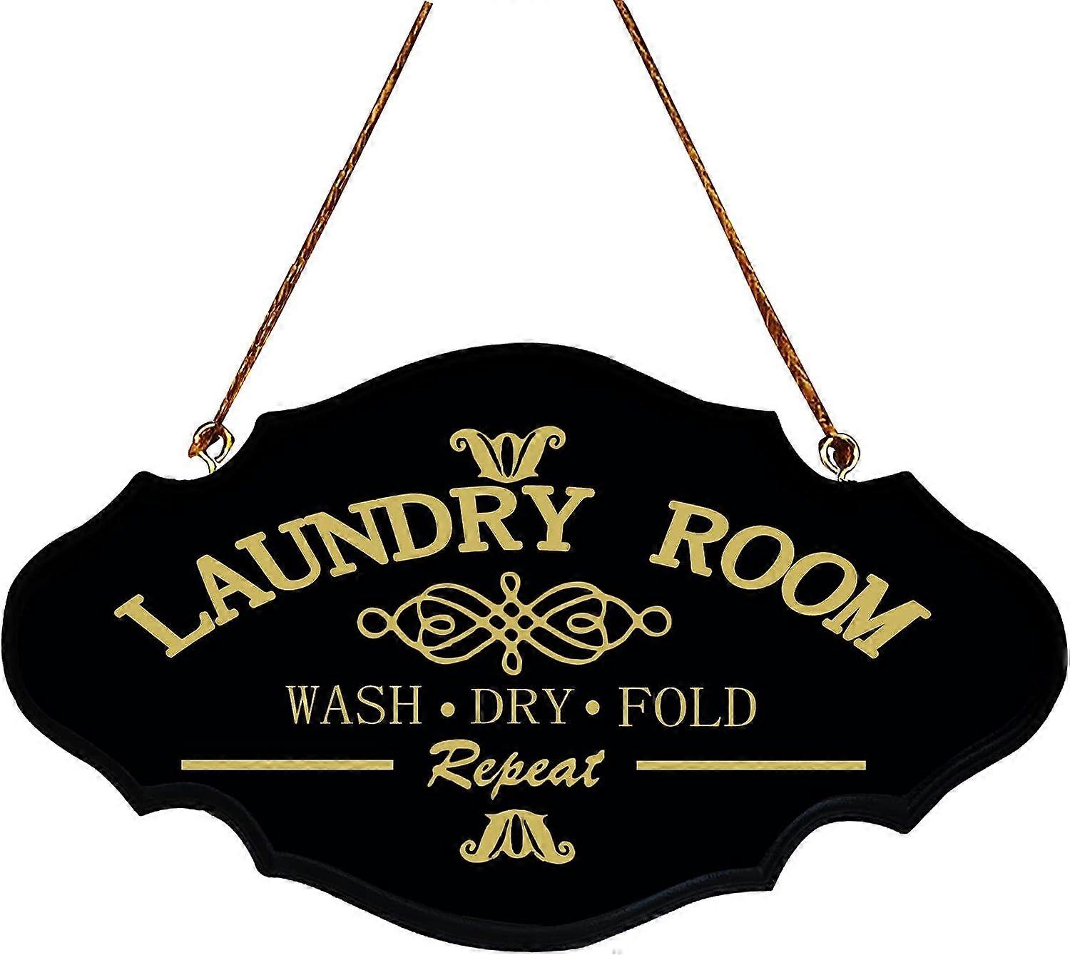 Laundry Room Wash Dry Fold Rustic Wood Sign Vintage Look Home Bathroom Wash Room Hanging Sign Plaque 6x11Inch (White)