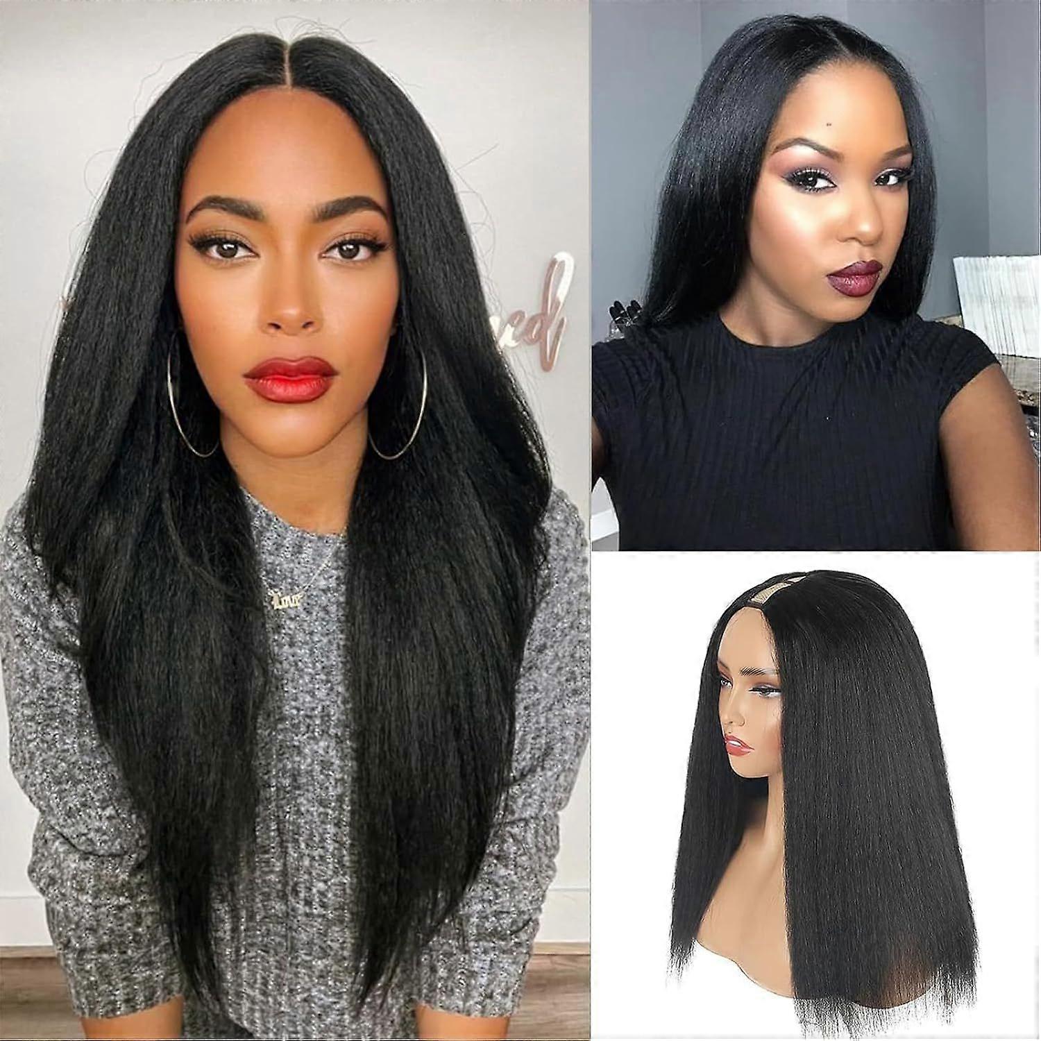Kinky Straight V Part Wig Synthetic Hair wigs for Black Women No Leave Out No