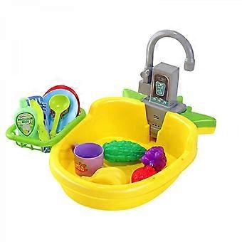 Children's Electric Dishwasher Toy Mini Simulation Automatic Washing Basin Play House Kitchen Kitchenware, 1 Piece, Yellow