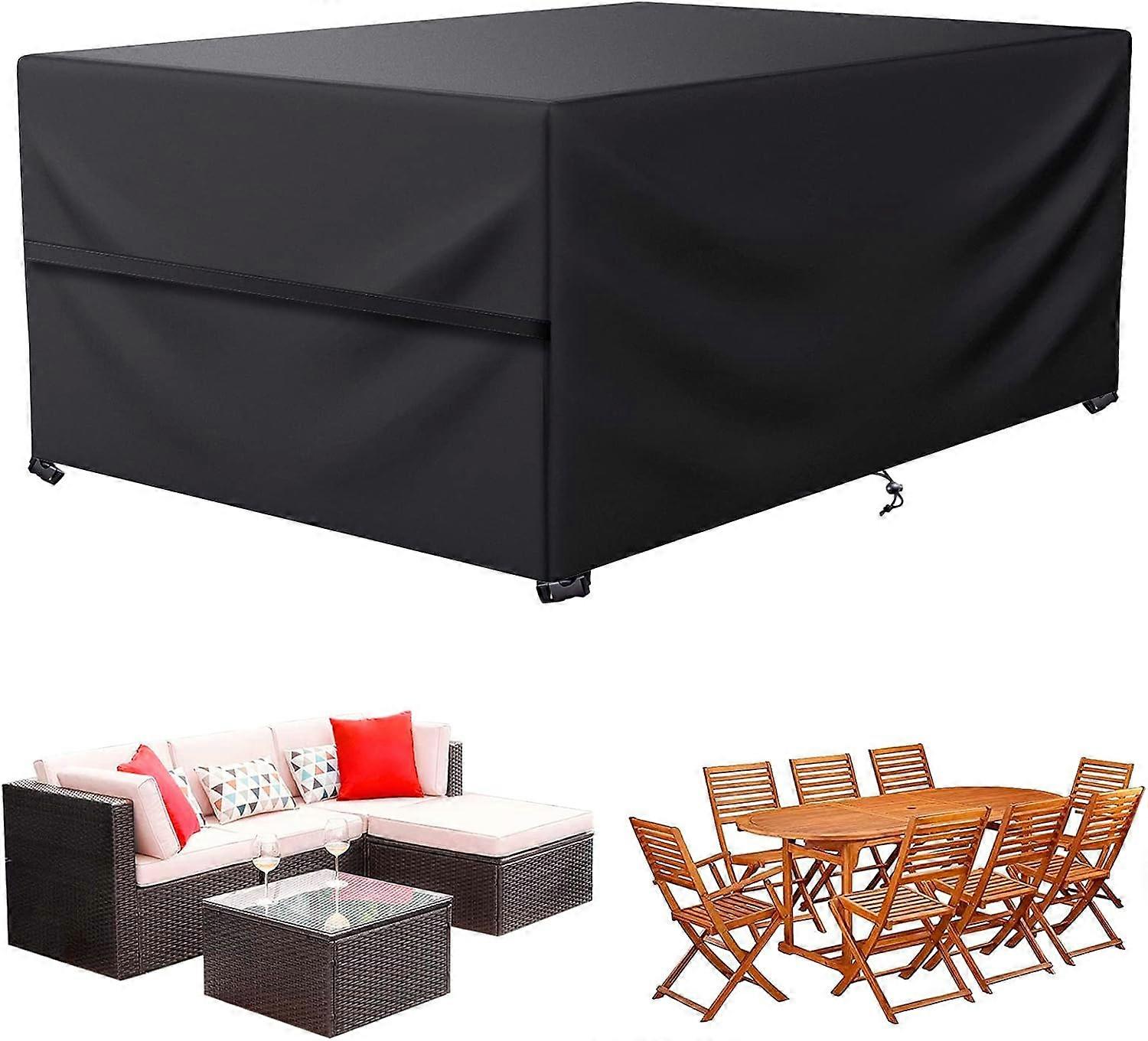 Garden Furniture Cover, 210D Oxford Fabric Garden Table Cover All Weather Protection, for Table and Sofa Sets with Rope and Buckle Lock (180 x 120 x 7